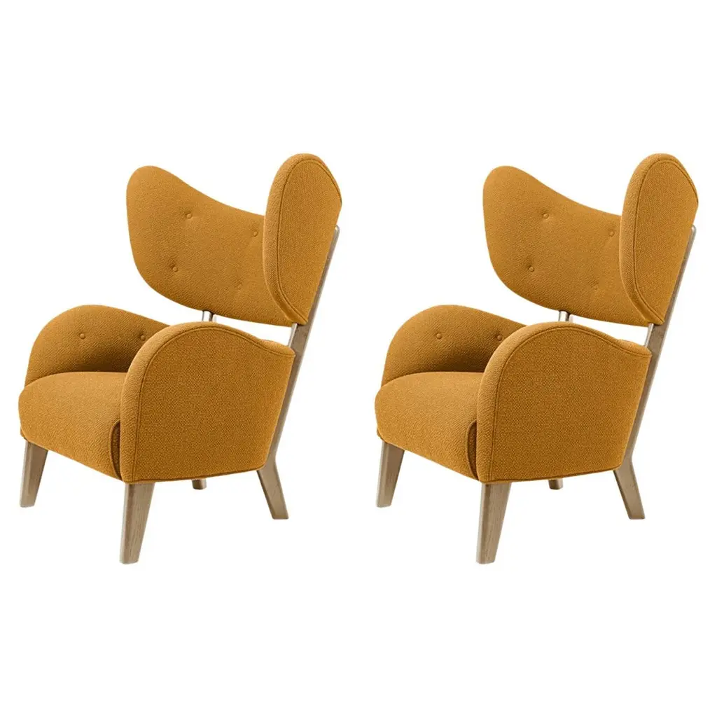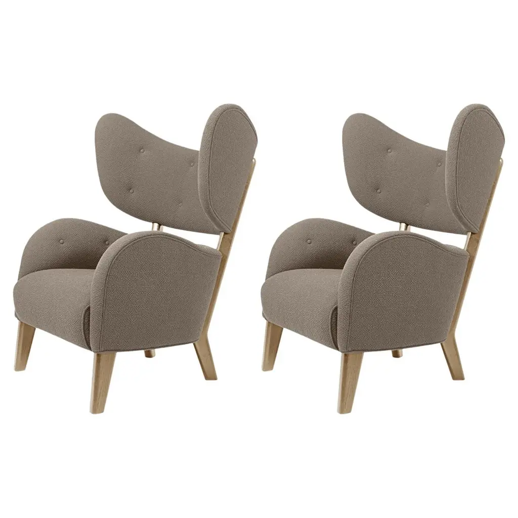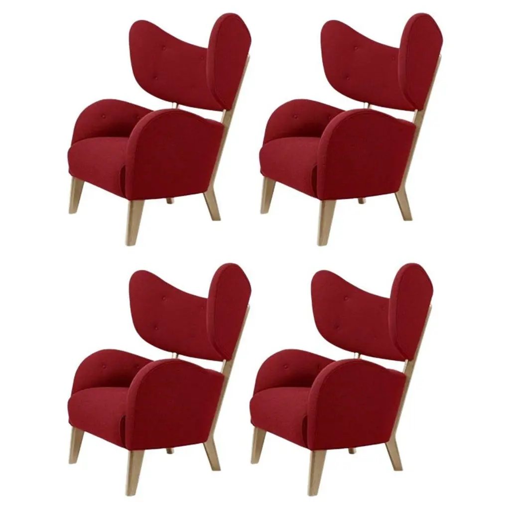 Set of 2 red raf simons vidar 3 natural oak my own chair lounge chairs by Lassen.Dimensions: W 88 x D 83 x H 102 cm. Materials: Textile.Flemming Lassen's iconic armchair from 1938 was originally only made in a single edition. First, the then controversial, forward-looking armchair was exhibited at The Copenhagen Cabinetmakers’ Guild Competition and later it became the favorite chair in the Lassen family home - hence its name. It was launched in connection with the chair's 80th anniversary and now it is also available in an alluring heavy, black version. By Lassen is a Danish design brand focused on iconic designs created by Mogens and Flemming Lassen, founded by Lassens’ relatives in 2008. Brothers Mogens (1901-1987) and Flemming (1902-1984) Lassen are known as two of Denmark’s greatest architects and designers. Both were renowned pioneers of Danish functionalism and modernist architecture, honoured with numerous prestigious medals and awards. Headed by Mogens Lassen’s grandson Søren Lassen, By Lassen carries on the brothers’ design philosophy by manufacturing their iconic designs as well as products by other designers that complement the Lassen’s functionalist style. The company’s mission is to continue the tradition of timelessness, functionality and quality, and to introduce the Lassen’s design heritage to new generations.