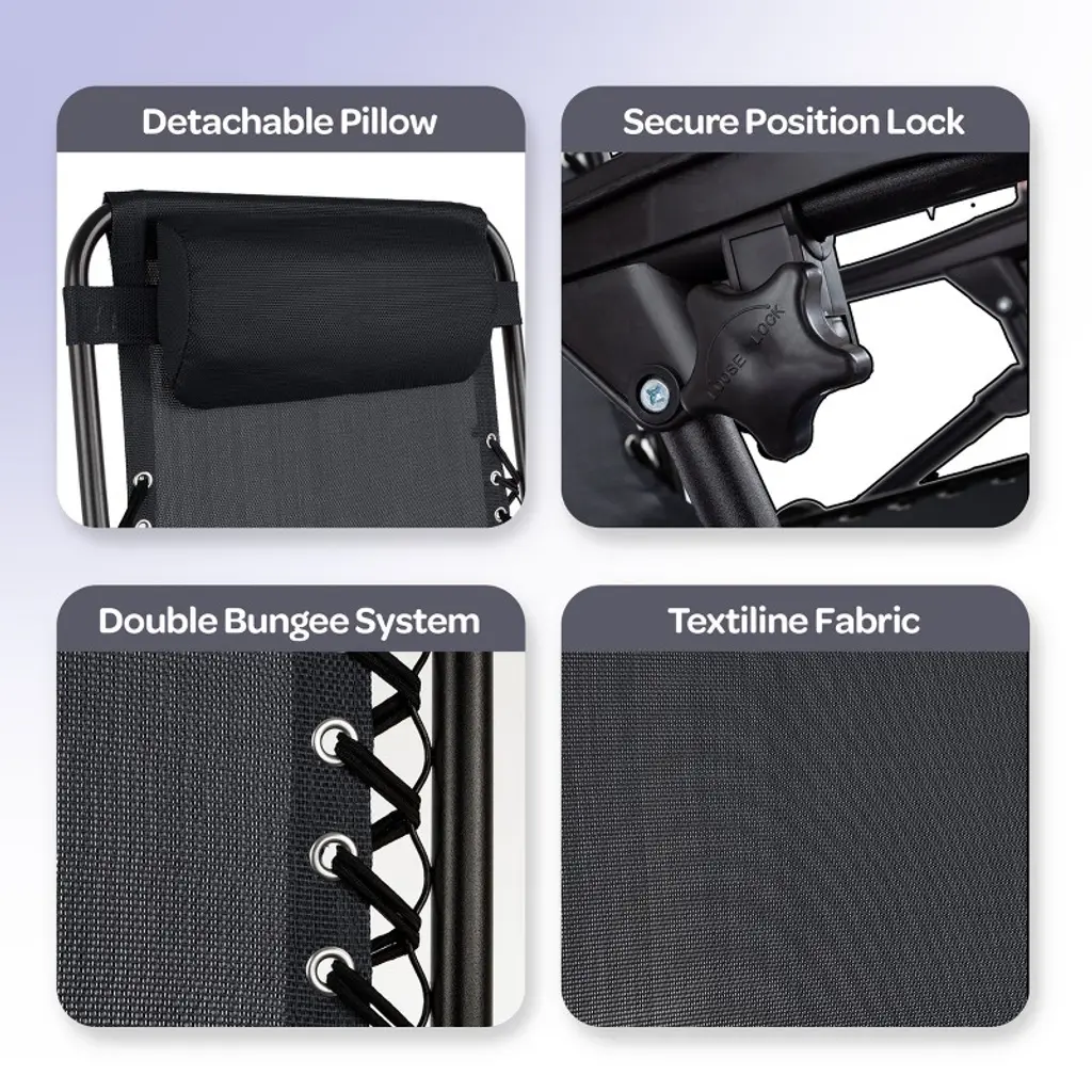 Set Of 2 Zero Gravity Outdoor Chairs With Side Tables, Cupholders, Phone, And Tablet Holder And Chair Pillow By Lavish Home, Black