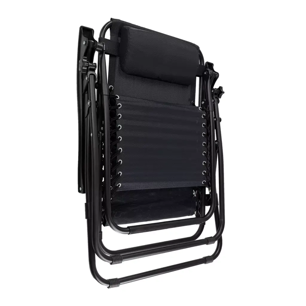 Get ready for your next outdoor adventure with this Patio Chairs Set of 2 by Lavish Home. Use the adjustable padded pillow on each patio chair as a neck rest or for lumbar support, and keep everyday essentials like beverages, sunscreen, and small electronics close by in the 2 cup holders or phone/tablet holders on the detachable side table. Suitable for use as camping accessories, beach chairs, RV accessories, and balcony furniture, these outdoor folding chairs boast sturdy tubular steel frames and rugged Textilene fabric to easily resist the elements and support up to 300lbs each.