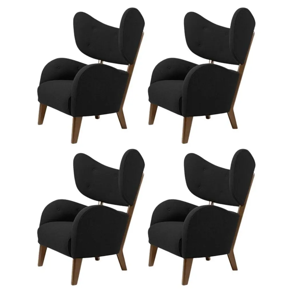 Set of 4 blue Sahco Zero smoked oak my own chair lounge chairs by LassenDimensions: W 88 x D 83 x H 102 cm Materials: TextileFlemming Lassen's iconic armchair from 1938 was originally only made in a single edition. First, the then controversial, forward-looking armchair was exhibited at The Copenhagen Cabinetmakers’ Guild Competition and later it became the favorite chair in the Lassen family home - hence its name. It was launched in connection with the chair's 80th anniversary and now it is also available in an alluring heavy, black version. By Lassen is a Danish design brand focused on iconic designs created by Mogens and Flemming Lassen, founded by Lassens’ relatives in 2008. Brothers Mogens (1901-1987) and Flemming (1902-1984) Lassen are known as two of Denmark’s greatest architects and designers. Both were renowned pioneers of Danish functionalism and modernist architecture, honoured with numerous prestigious medals and awards. Headed by Mogens Lassen’s grandson Søren Lassen, by Lassen carries on the brothers’ design philosophy by manufacturing their iconic designs as well as products by other designers that complement the Lassen’s functionalist style. The company’s mission is to continue the tradition of timelessness, functionality and quality, and to introduce the Lassen’s design heritage to new generations.