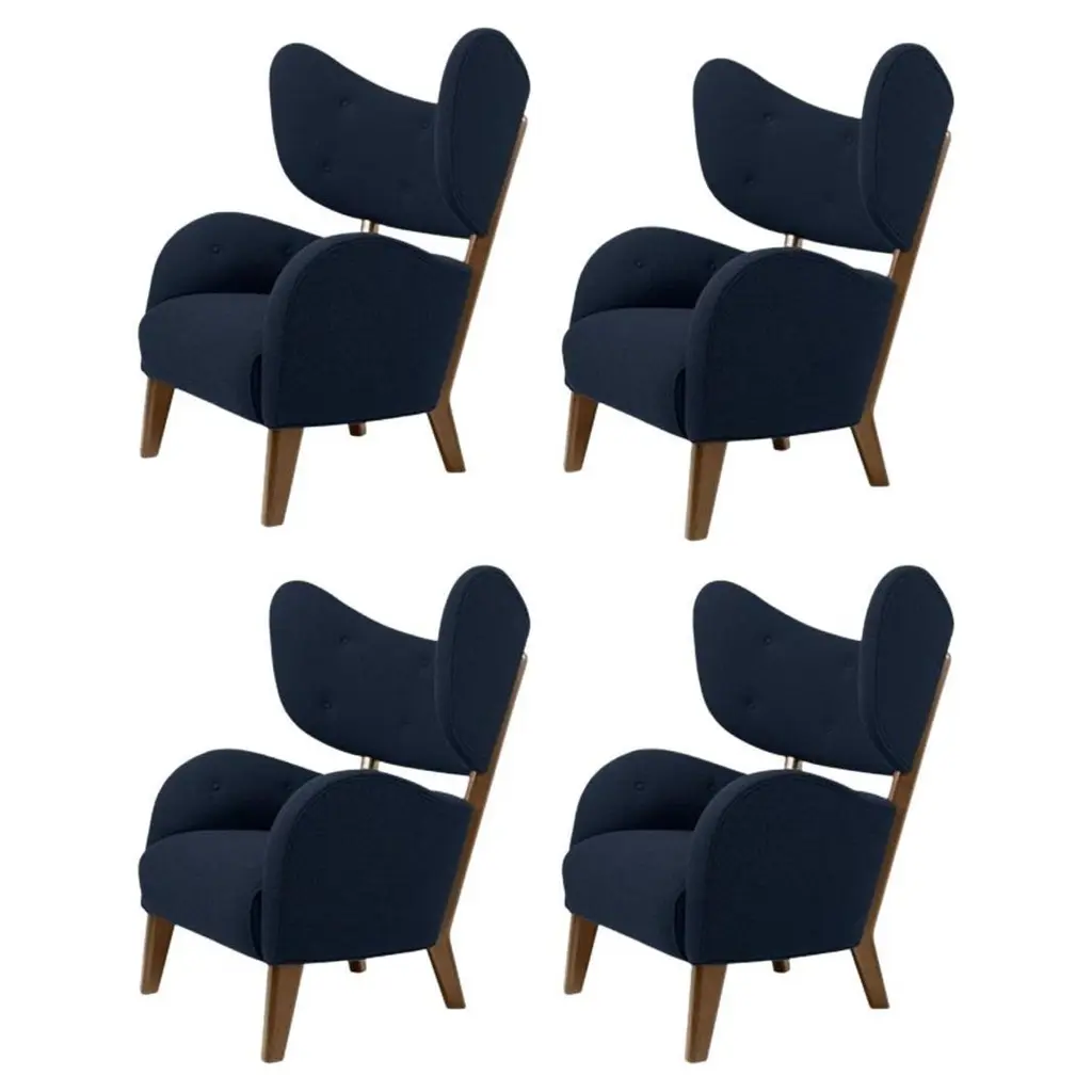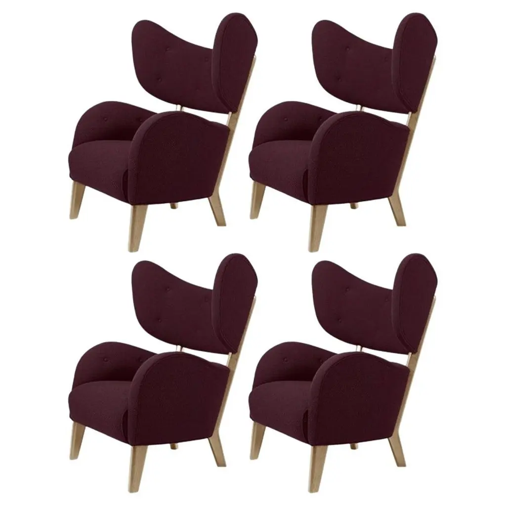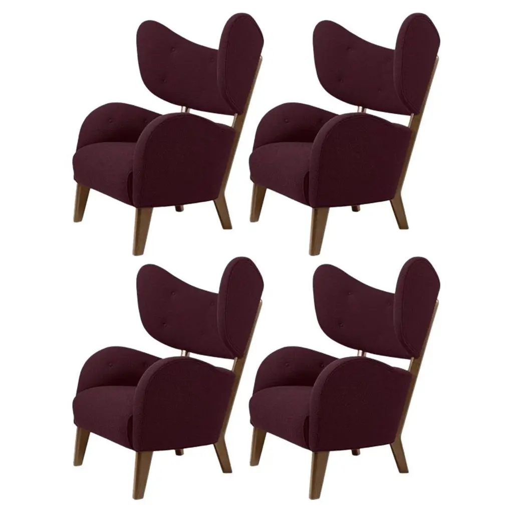 Set of 4 red raf simons vidar 3 natural oak my own chair lounge chairs by Lassen.Dimensions: W 88 x D 83 x H 102 cm.Materials: Textile.Flemming Lassen's iconic armchair from 1938 was originally only made in a single edition. First, the then controversial, forward-looking armchair was exhibited at The Copenhagen Cabinetmakers’ Guild Competition and later it became the favorite chair in the Lassen family home - hence its name. It was launched in connection with the chair's 80th anniversary and now it is also available in an alluring heavy, black version. By Lassen is a Danish design brand focused on iconic designs created by Mogens and Flemming Lassen, founded by Lassens’ relatives in 2008. Brothers Mogens (1901-1987) and Flemming (1902-1984) Lassen are known as two of Denmark’s greatest architects and designers. Both were renowned pioneers of Danish functionalism and modernist architecture, honoured with numerous prestigious medals and awards. Headed by Mogens Lassen’s grandson Søren Lassen, By Lassen carries on the brothers’ design philosophy by manufacturing their iconic designs as well as products by other designers that complement the Lassen’s functionalist style. The company’s mission is to continue the tradition of timelessness, functionality and quality, and to introduce the Lassen’s design heritage to new generations.