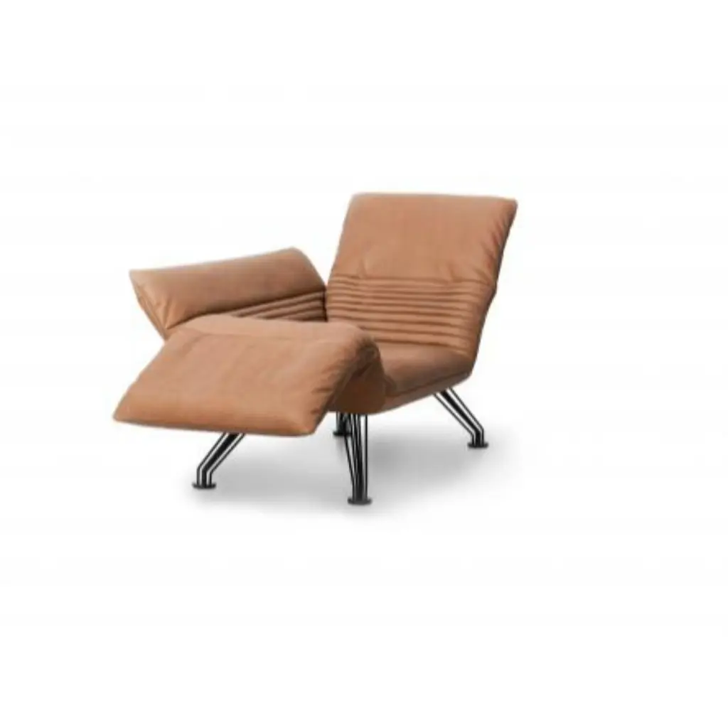 Set of DS-142 multifunctional lounge chair with 2 cushions by De SedeDesigner: Winfried TotzekDimensions: D 82-98 x W 160-198 x H 56-97 cmCushion: W20 x H 10 cmMaterials: Black metal feet, 5-spoke base, leatherA place to sit or lie down upon, every time A piece of furniture that can do anything: DS-142 is a multifunctional chaise lounge with individually adjustable back- and armrests that can be moved to different positions.It turns this unusual chair into a dynamic, relaxation-boosting system that offers utmost comfort and coziness while taking human anatomy into account.The synthesis of elegant form and function is rounded off by the masterful workmanship in high-quality leather that is typical for De Sede.The DS-142 ultimately becomes the ideal reclining armchair for a wide variety of applications.De Sede has its origins in a small but skilled saddler's workshop in Klingnau, Switzerland. The craftsmen there committed themselves to transforming the best possible leather into seating furniture. Their years of experience and diligence enabled them to create handcrafted leather furniture of singular quality.In 1965, the family-run business became a joint-stock company called De Sede AG, but remained faithful to their original guiding principles.The company developed rapidly from this moment onwards: top designers of international calibre were brought on board to create seating furniture, additional manufacturing facilities were opened, and an international distribution network was established. Sophisticated designs that skilfully integrate traditional and precise Swiss workmanship swiftly gained the brand an international reputation.Today, de Sede AG presents itself as a leading manufacturer of exclusive leather furniture. Out of the original small workshop, a company has emerged that employs over 110 people and distributes furniture in more than 69 countries, including the United States and Russia, the GCC countries, and even emerging markets such as China and Brazil.