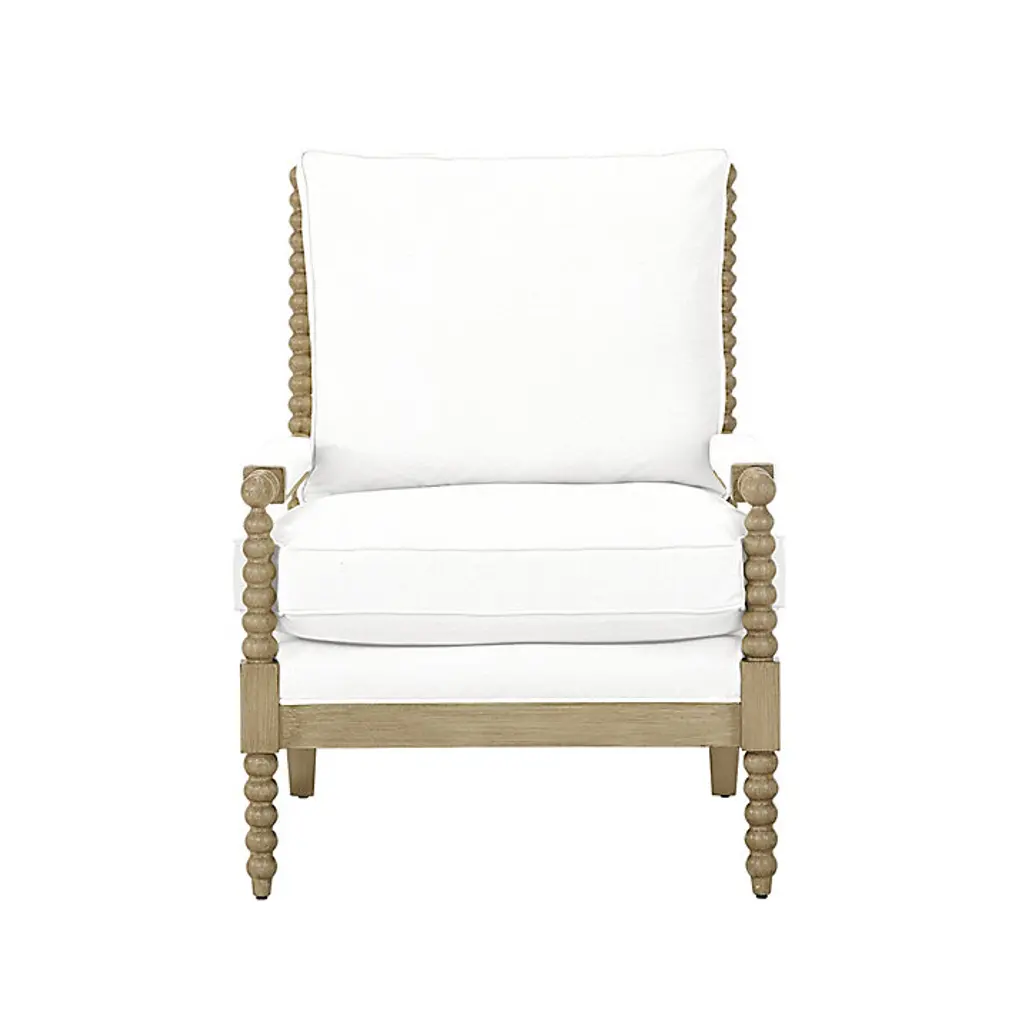 American spool furniture became hugely popular in the mid 19th century and remains a classic decorator favorite. Our Shiloh Spool Chair captures the vintage look with deep seat comfort and richly carved texture. The hardwood frame is artisan crafted in North Carolina with warm Latte finish and features thick seat and back cushions for the perfect blend of give and support. This special edition of our best-selling Shiloh Spool Chair comes stocked and ready to ship in your choice of four beautiful, family-friendly performance fabrics. Shiloh Spool Chair features: Ballard Designs Performance Fabrics by InsideOut features: Ballard Designs Performance Fabric by Crypton Home features:
