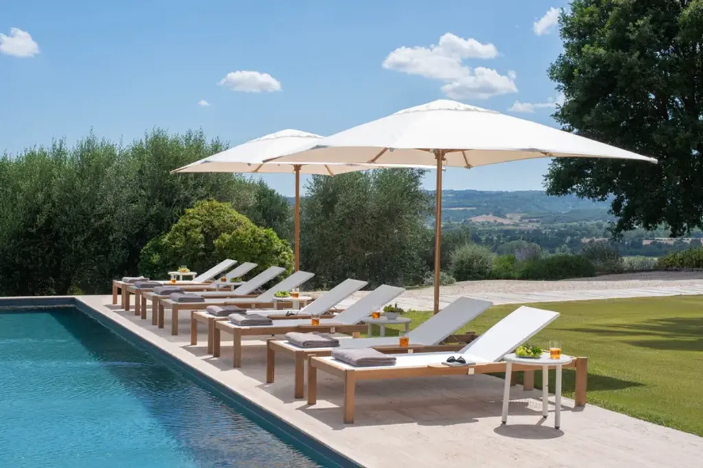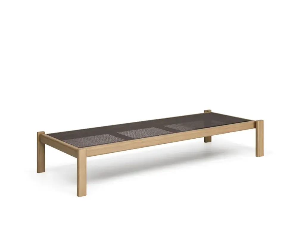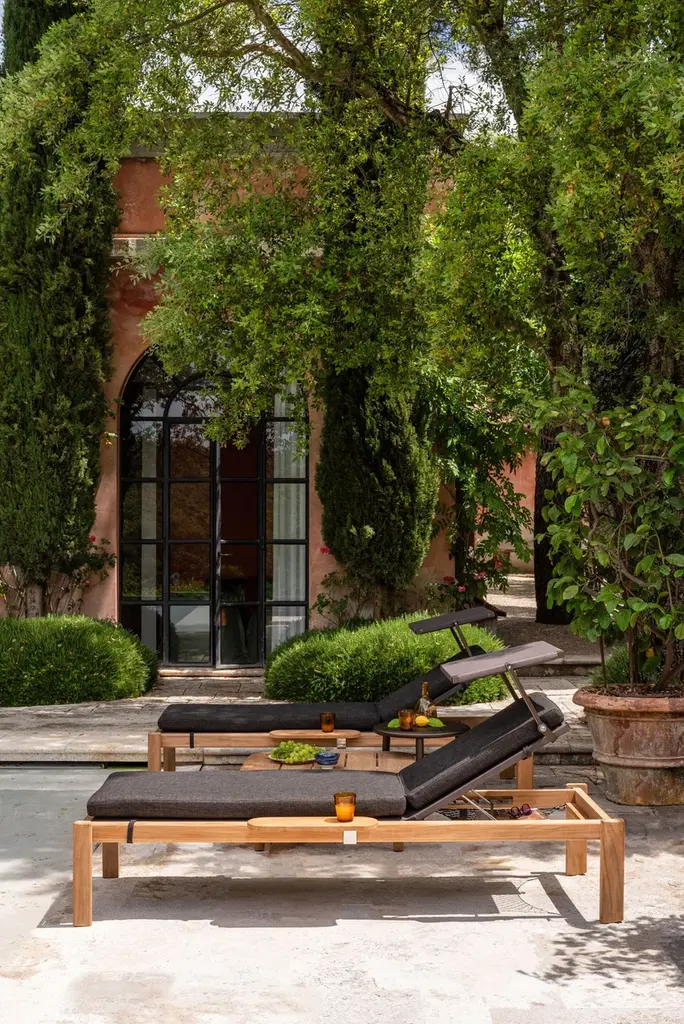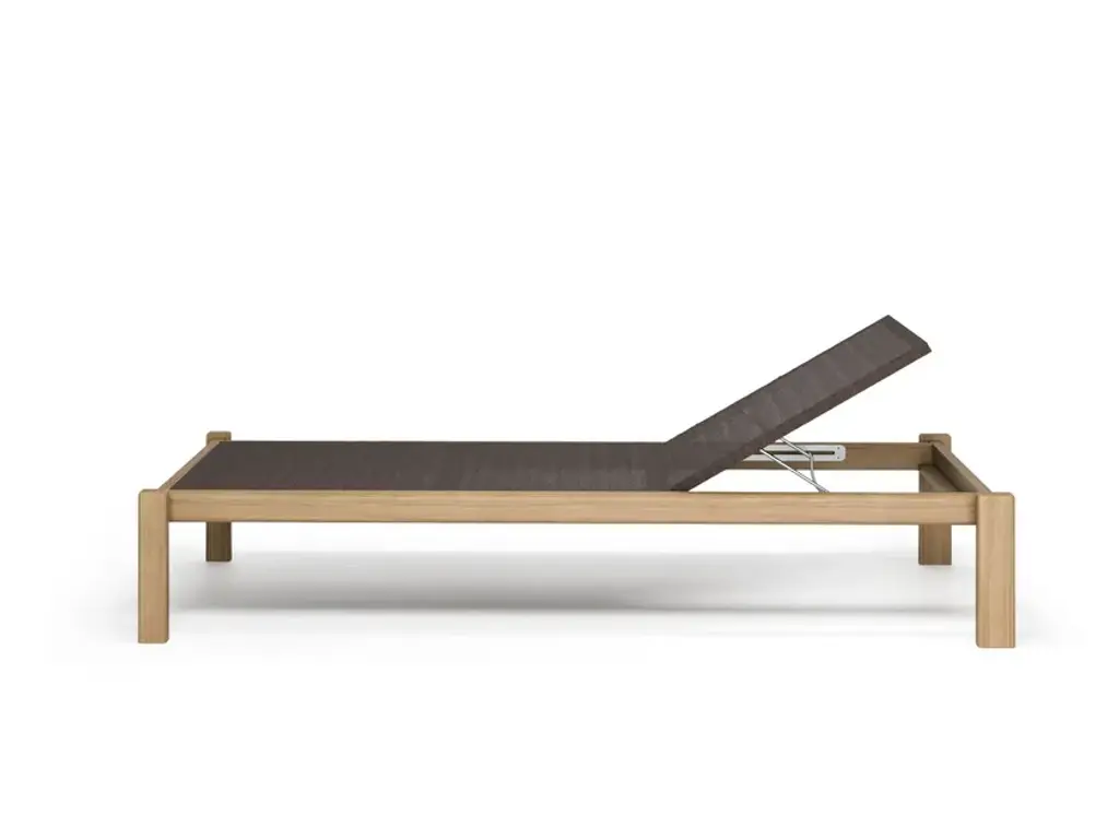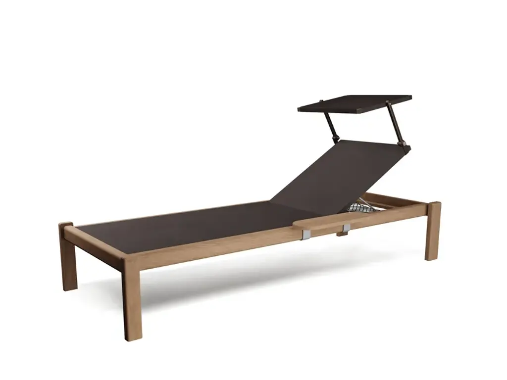 Shine is a stackable garden sunbed in teak with concealed wheels. Also available with armrests, a canopy, and a tray.The modern, quintessential lines of Arik Levy's Shine collection are designed for both the Home and Contract sectors. A full collection of aluminium and teak furniture, with an understated design: Shine has an innate versatility that makes it perfect for both indoor and outdoor settings. Chairs, armchairs, lounge chairs and stools are available with both aluminium and FSC® teak seats. The collection is completed by single sunbeds with frames in either aluminium or FSC® teak, double sunbeds, tables of various sizes, fixed and extensible, suitable for different space requirements and contexts of use.Available colours: structure: matt white, black, dark brown, dove greytop: teakLounger fabric: white, black, brown, dove grey