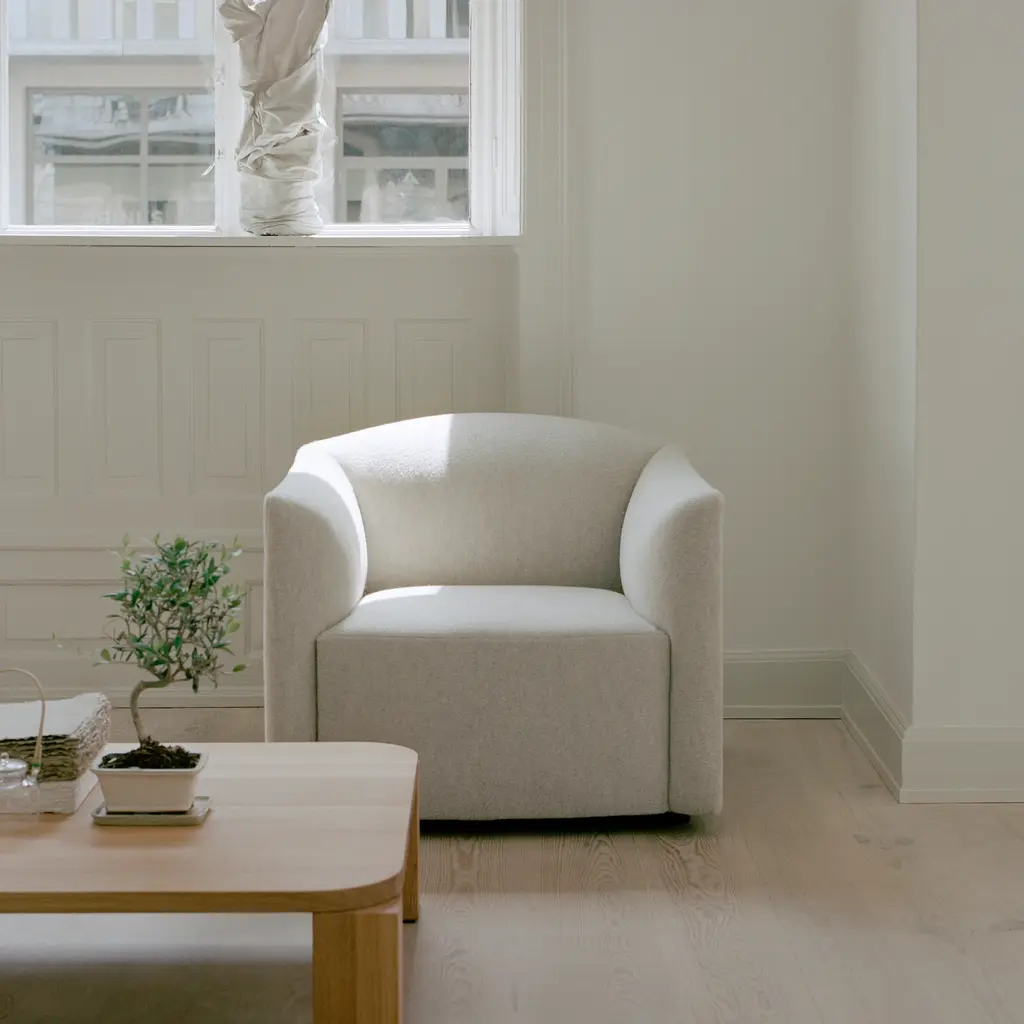The New Works Shore Lounge Chair, crafted by Joel Fjällström, embodies the fluidity of coastal landscapes with its elegant, sweeping design. This lounge chair features a subtly curved backrest that echoes the movement of waves. The plinth base contrasts with the soft upper part, giving the chair an impression of floating above the floor. Upholstered in high-quality textiles, the Shore Lounge Chair offers a comfortable and inviting seating experience, molding around the body.