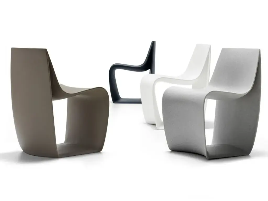 A natural evolution of the Sign project, which with its classic glossy finish transforms into a striking single-material unit with a matt finish.The new material and the wide chromatic range make it possible to use this product both indoors and outdoors.Structure and finishThe single-material load-bearing structure is in polyethylene (PE)*, moulded with rotational moulding technology.Available in matt variants in the colours white, mud, and cement.Only white, the purest and most delicate colour, is made with a particular mixture called EASY CLEAN. A specific additive added to the initial plastic material facilitates the cleaning and the maintenance phases.*The material (PE) can present some impurities internally, due to particular production treatments, which are included in the accepted quality standards.Supplied with a removable foot, easily interchangeable to ensure perfect adaptation to every type of surface or flooring.A version with a dripping hole is available for both the chair and the armchair. The hole cap is in white for the S005 white and S036 cement finishes, in black for the S050 mud finishes.Sign - Highly-comfortable seatings of great impact.FrameSelf-supporting frames made from polyamide (nylon 6), rotationally molded, gloss lacquered white. They always come with a drill (dia. 9 mm) for water drainage. Supplied with a kit of 4 kinds of small feet, easily interchangeable, which are fit for any kind of floor: ceramic, wood, carpet, linoleum etc., for indoor use.FinishAcrylic paint of high-quality in terms of gloss, resistance and hardness (automobile sector). Any scratch caused by everyday use can be removed and the original gloss maintained using the polishing kit provided (cloth and polish).
