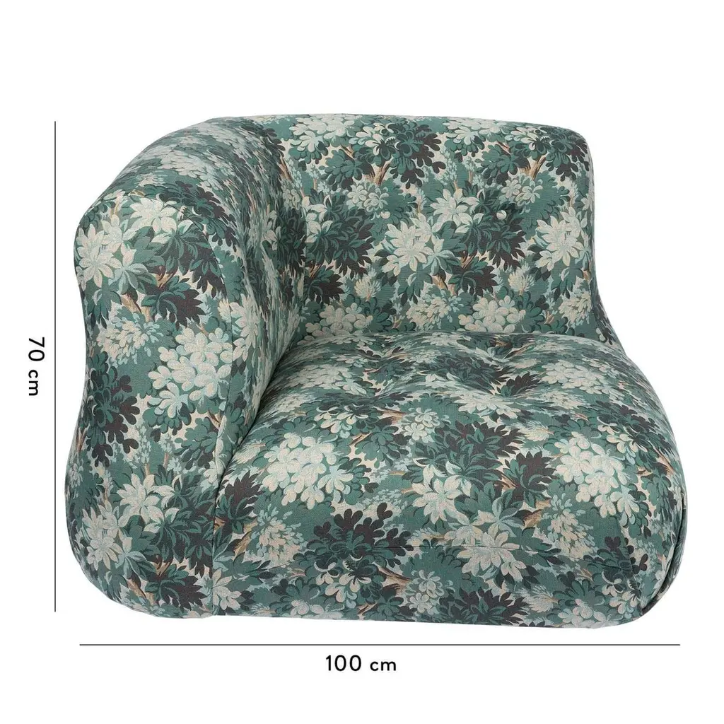 Swathed in the rich SILVA jacquard, a French archival print in the classic style of 17th and 18th Century verdure tapestries, this 1960’s style modernist corner chair is a marriage of two iconic ages of design. The Castle Chair is the epitome of laid-back style - quite literally - with its low-lying shape creating an instantly relaxed vibe for cinema rooms, reading rooms or living rooms. This corner shape is ideal paired with our Castle Chairs to create an L-shaped sofa. Each piece is crafted in the UK by the country’s finest furniture makers.Each piece sold enables House of Hackney to purchase and protect 35 square metres of forest thanks to our partnership with the World Land Trust, the international conservation charity that safeguards our most vital natural ecosystems and threatened habitats, acre by acre. House of Hackney is evolving from being a sustainable business to a regenerative one; where instead of just ‘sustaining’ life we actively heal and restore our business touchpoints and communities. Learn about how we’re putting people and planet first on our impact page.