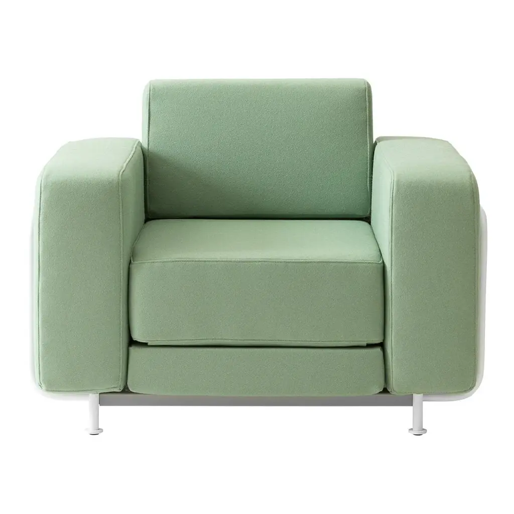 SNUG, MINIMALISTIC ELEGANCE. The SILVER set lets you create a compact sitting or sleeping area and is perfect for the small living room. Choose between the chair or the sofa in a number of colours and fabrics. The steel frame comes lacquered in white or full gloss chromium steel.