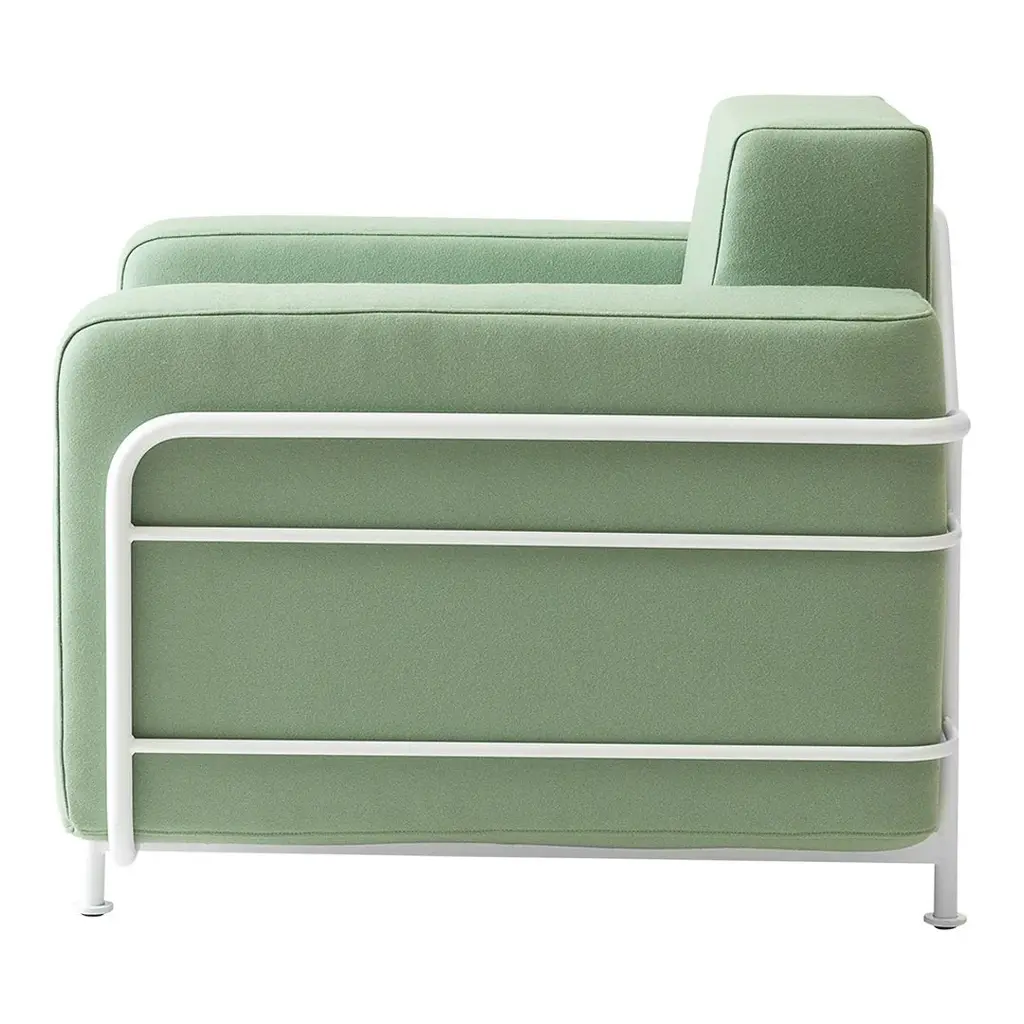 SNUG, MINIMALISTIC ELEGANCE. The SILVER set lets you create a compact sitting or sleeping area and is perfect for the small living room. Choose between the chair or the sofa in a number of colours and fabrics. The steel frame comes lacquered in white or full gloss chromium steel.