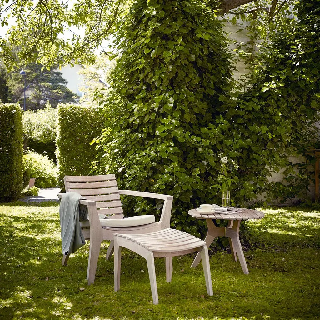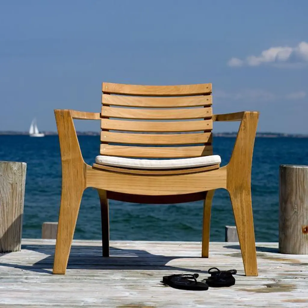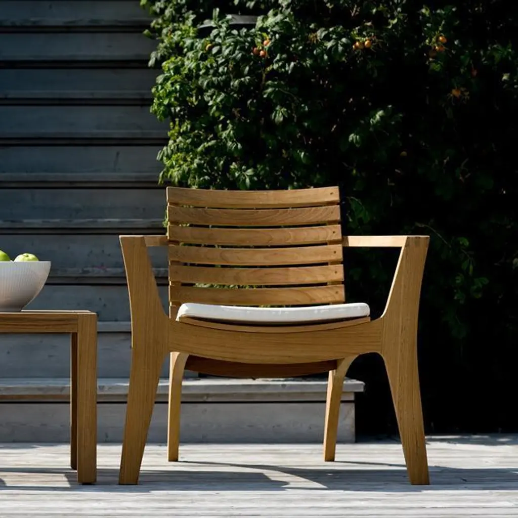 You can float and relax in style in the Regatta Lounge Chair. The chair is designed by Hans Thyge and is lovely and comfortable with or without the membrane. The Regatta Lounge Chair is made of solid teak slats and offers a sturdy foundation with its solid frame, yet it is a light-and-airy, elegant piece of furniture on the patio.