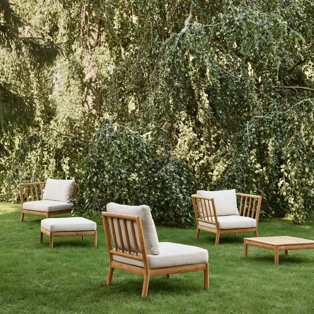 The Tradition modular lounge series brings a refined sophistication to outdoor spaces and the versatility to adapt to any individual needs. Tradition elevates the outdoor lounging experience to new heights in comfort and beauty. Designed for Fritz Hansen by Danish designer Povl B. Eskildsen, Tradition is meticulously hand crafted using FSC-certified core teak wood selected for its beauty, strength and durability. Over time, untreated teak will patinate to a beautiful silver-grey color.