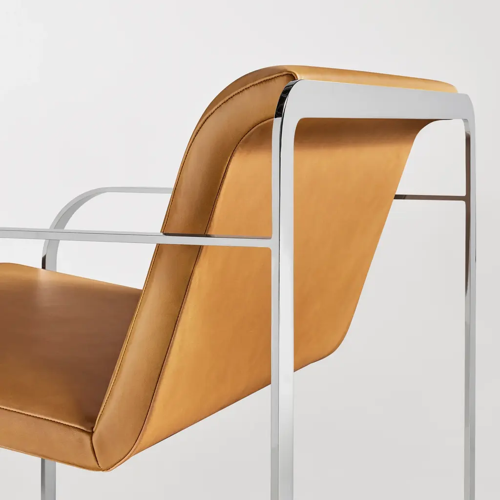 Meet Skald, a modern yet classic lounge chair perfectly situated for composing poetry. Made in Italy with luxe fabrics paired with polished chrome or powder-coated steel frame creates an inviting silhouette for an architectural piece.