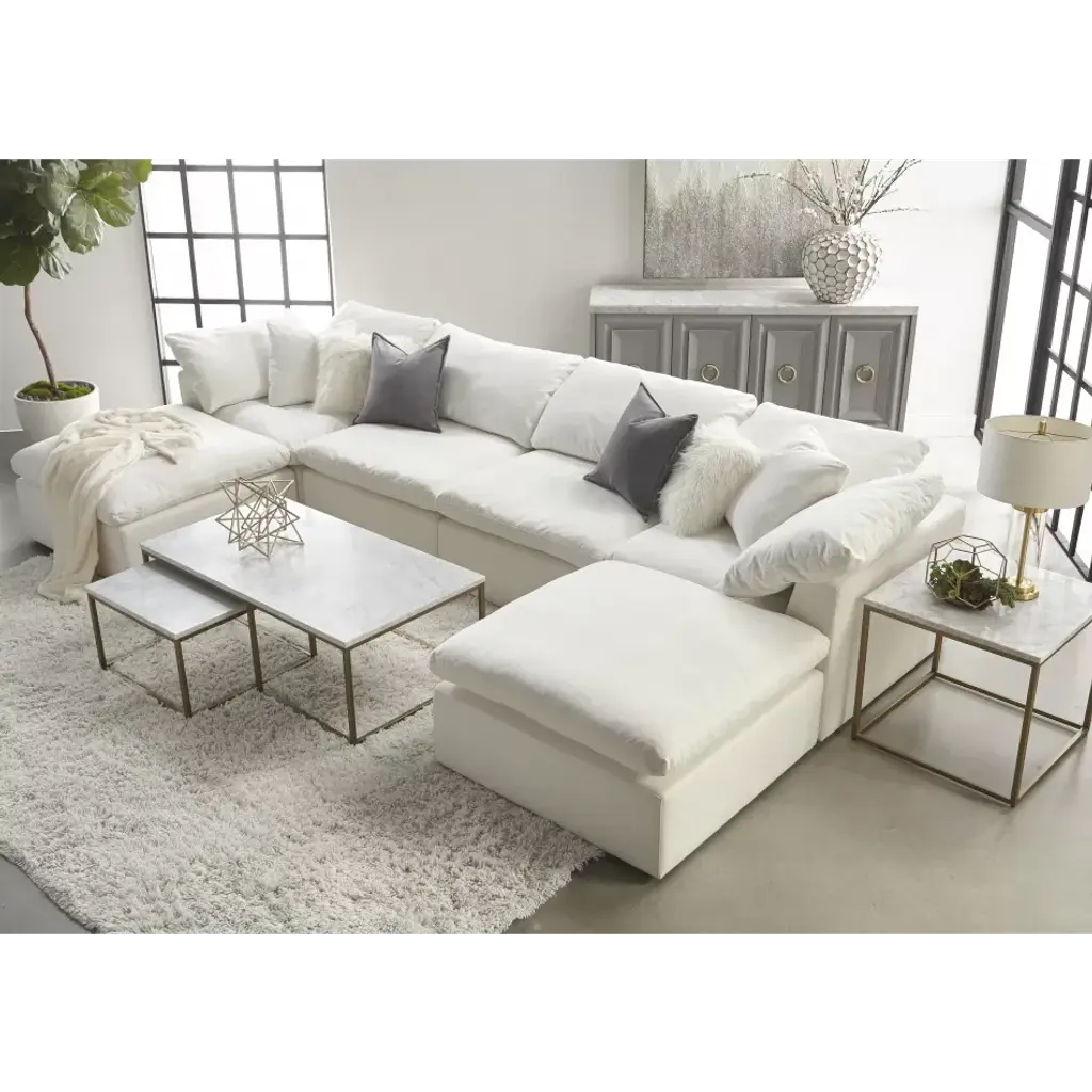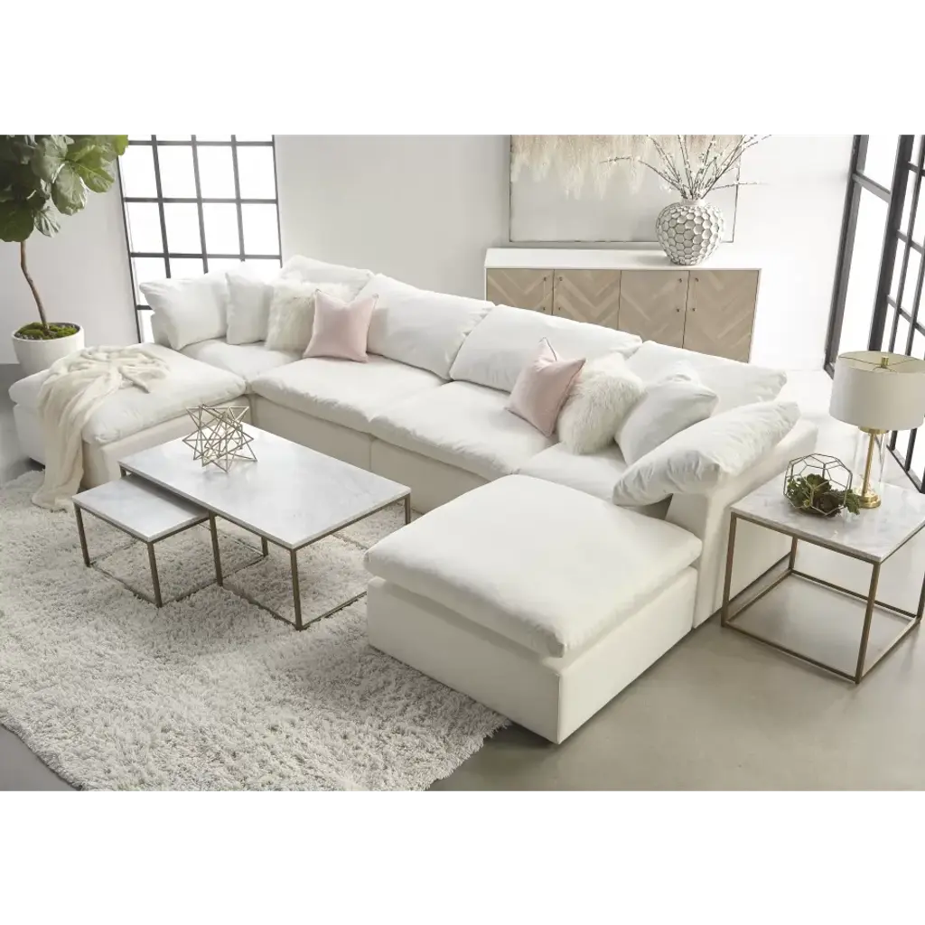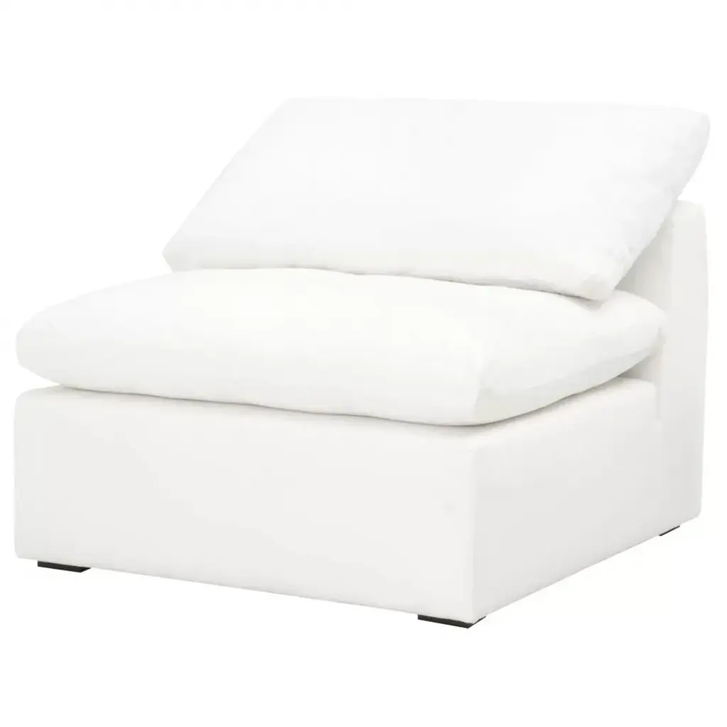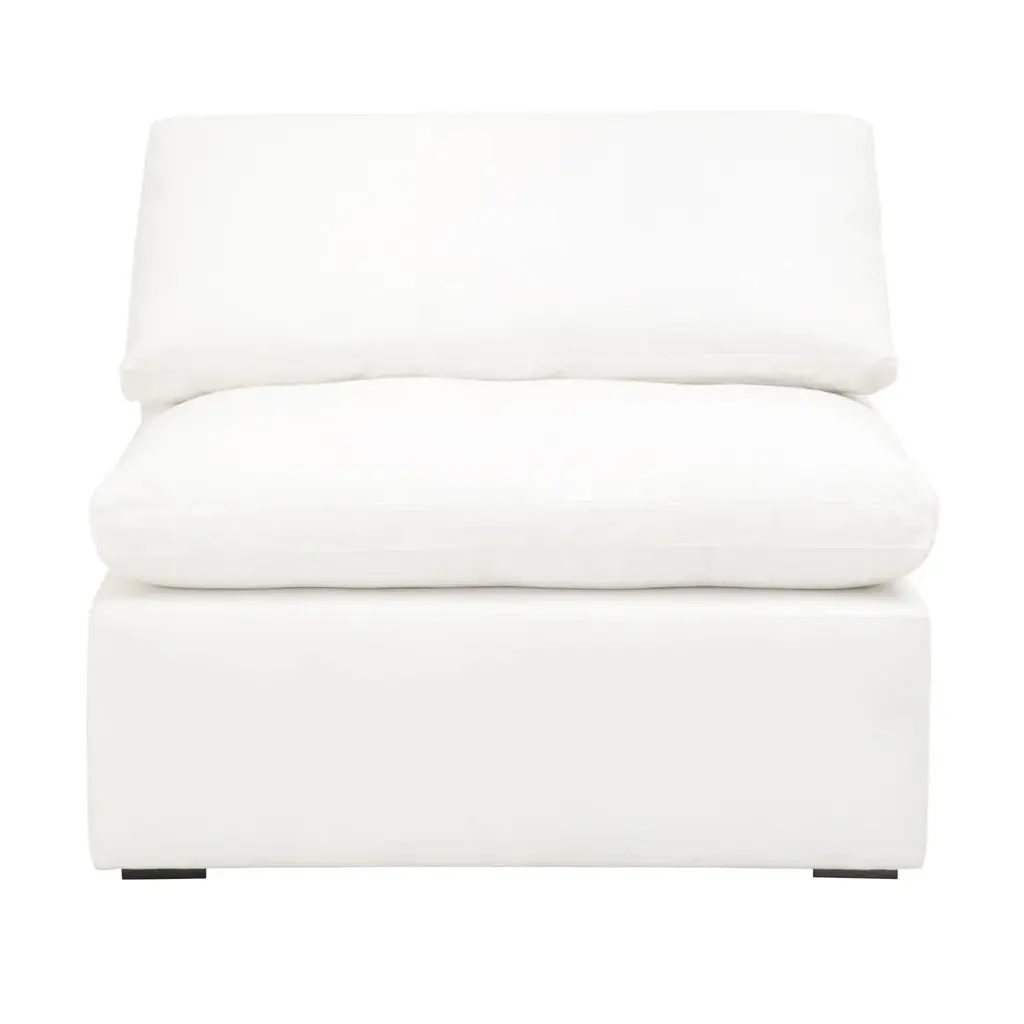 Add transitional style to your living room, family room, or den with this modular armless chair in Livesmart Peyton-Pearl fabric. With the seat cushion made of half down and half polyester, this chair is extremely comfortable to curl up and read a book or watch television on. It features reversible seat and back cushions, as well as ties to prevent the cushions from moving. Constructed with 3.8" coil sinuous springs and stain resistant fabric, this chair is meant for durability and dependability. Pairs nicely with sectional sofas and works great as additional seating.