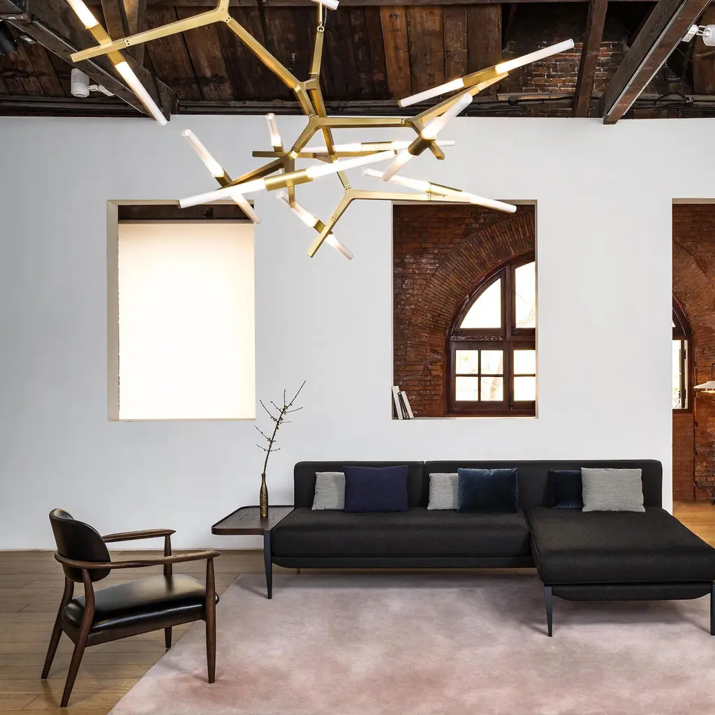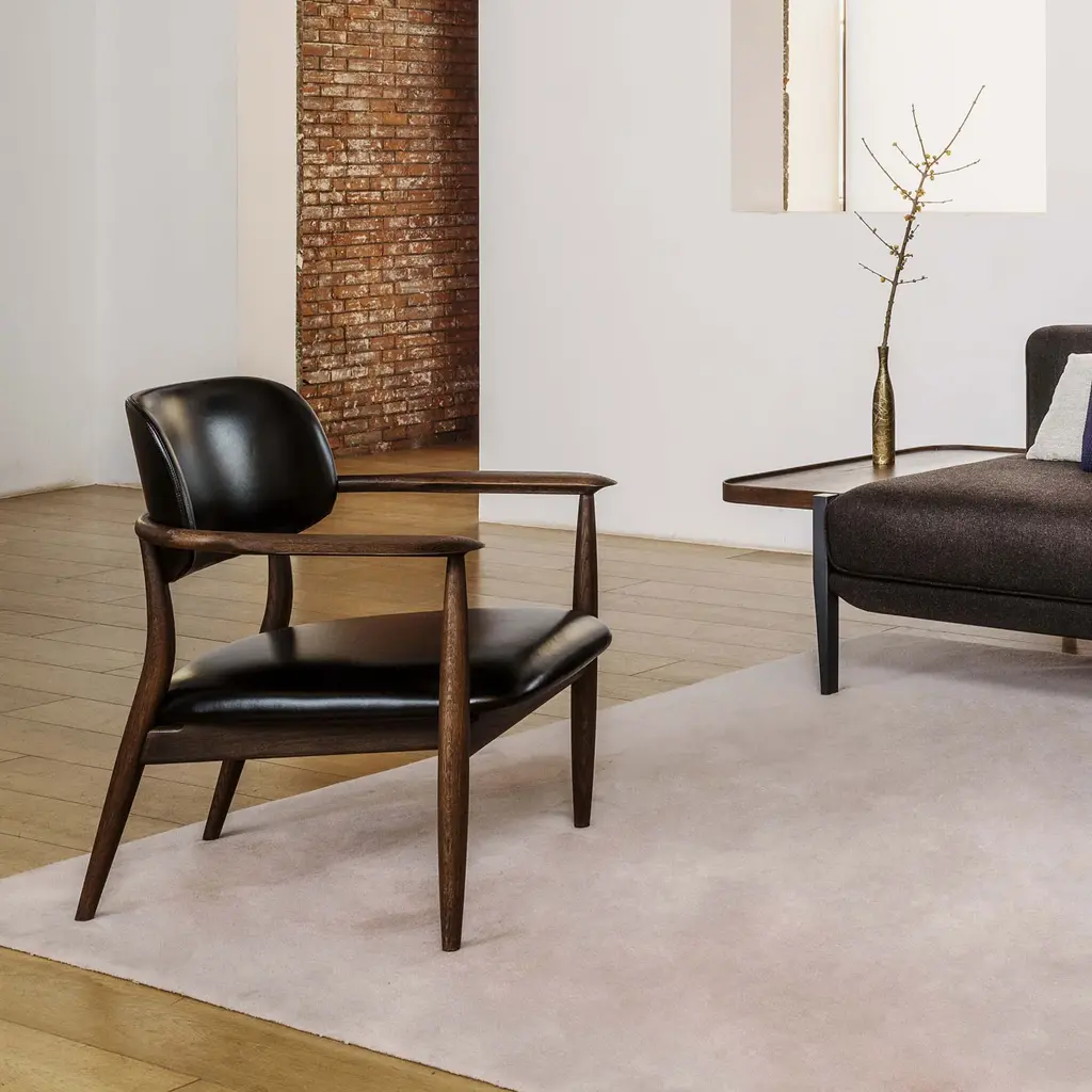 Take it Slow. The broader proportions and lowered stance of this lounge chair from Stellar Work's aptly-named collection seem made for relaxation. Originally devised by Space Copenhagen for famed chef René Redzepi's restaurant 108 in the Danish capital, the collection is built along elegantly narrow lines in a melding of mid-century Danish and classic Japanese design. Handcrafted in walnut and ash with invitingly thick leather seating for a luxurious take on high comfort.