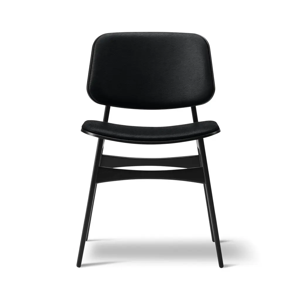 The Soborg Upholstered Chair from Fredericia Furniture offers comfort and versatility with its generous proportions and customizable upholstery. Suitable for various settings such as restaurants, meeting rooms, workspaces, or homes, an expertly crafted solid wood frame is accented by gracefully curved stretchers and rounded edges. Designed by Børge Mogensen in 1950, the chair's replaceable components make it a durable and sustainable choice. Highlights