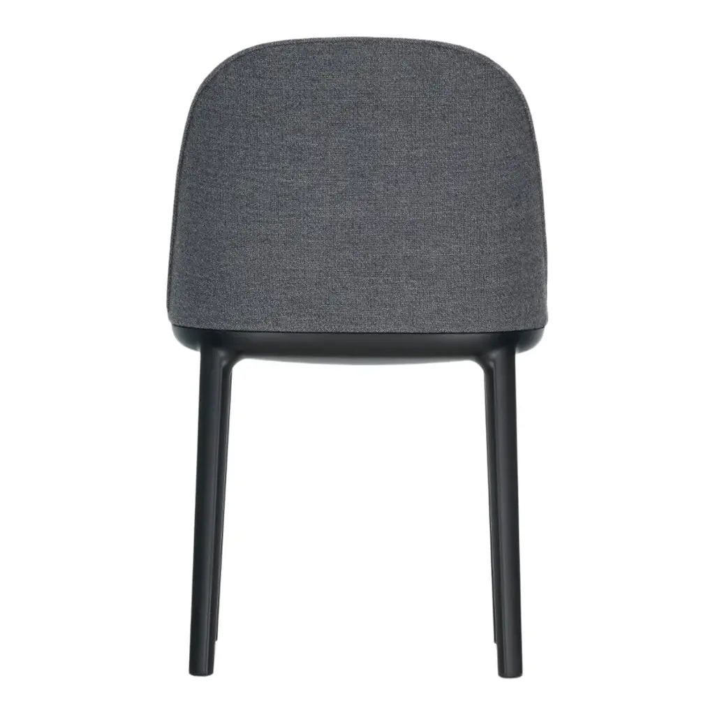 The Softshell Side Chair, whose gentle contours are defined by its soft upholstery, provides exceptionally comfortable seating and compact dimensions: vertical ribs concealed in the upper part of the backrest offer flexibility and considerable freedom of movement – and exceptional comfort even over prolonged periods of sitting. The Softshell Side Chair has a four-legged base made of robust plastic that accentuates the understated elegance of the design. Similar in appearance, the Softshell Side Chair and Softshell Chair can be perfectly combined at the same table. Both chairs are available in the same selection of versatile fabric or leather covers in a wide choice of colours.