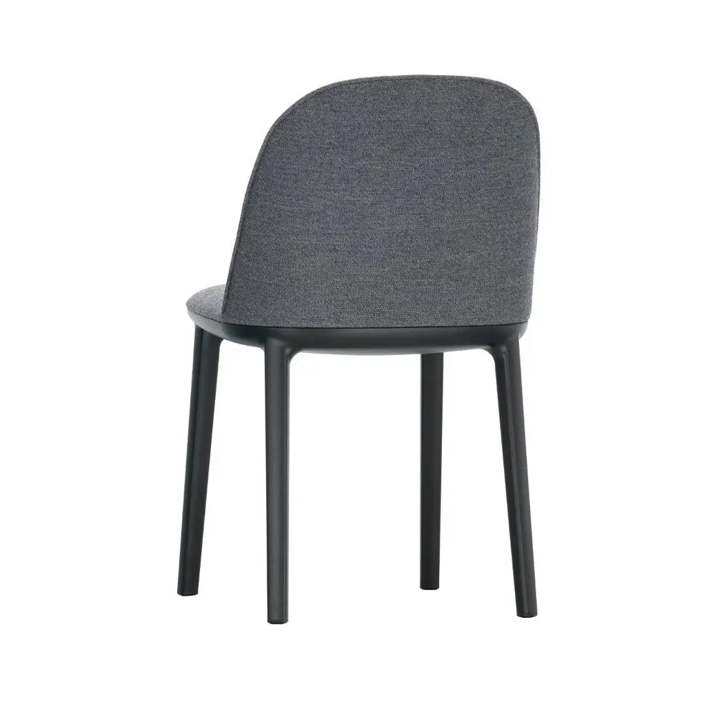 The Softshell Side Chair, whose gentle contours are defined by its soft upholstery, provides exceptionally comfortable seating and compact dimensions: vertical ribs concealed in the upper part of the backrest offer flexibility and considerable freedom of movement – and exceptional comfort even over prolonged periods of sitting. The Softshell Side Chair has a four-legged base made of robust plastic that accentuates the understated elegance of the design. Similar in appearance, the Softshell Side Chair and Softshell Chair can be perfectly combined at the same table. Both chairs are available in the same selection of versatile fabric or leather covers in a wide choice of colours.