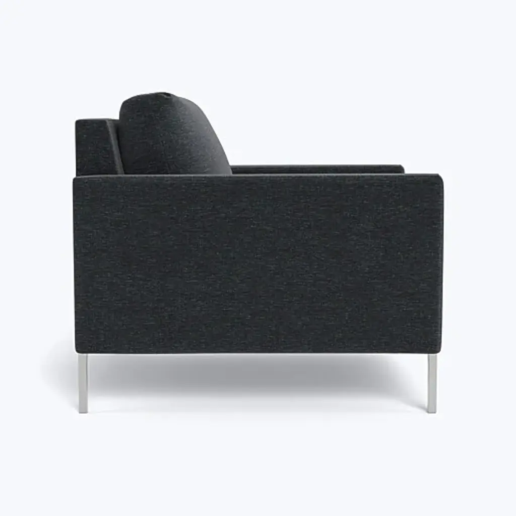 The Soho Lounge Chair, exclusively from ABC Carpet & Home, embodies the sleek sophistication and modern style of New York’s Soho neighborhood. With its low-profile design and refined silhouette, this lounge chair adds a touch of contemporary elegance to any space, whether it’s your living room, bedroom, or reading nook. The versatile design allows it to stand alone as a statement piece or pair seamlessly with other seating. Constructed with a sustainably sourced Goodwood frame, the Soho Lounge Chair is as durable as it is stylish. The cushion cores, made from eco-friendly foam derived from sustainable, plant-based materials, are wrapped in a luxurious blend of feather and down, ensuring plush comfort and firm support. The option of brass or steel legs allows you to tailor the look to your interior style, enhancing the chair’s modern appeal. With over 80+ customizable fabric options, the Soho Lounge Chair can be personalized to suit your home’s aesthetic. Choose from jewel-tone velvets like Vance for a bold statement, performance fabrics for durability in high-traffic areas, or Libico linen for a sleek and minimalist vibe. Each chair is handcrafted and delivered within 8-10 weeks, ensuring a high-quality experience from start to finish. Whether you’re adding a cozy corner seat or looking for a standout accent chair, the Soho Lounge Chair offers the perfect blend of comfort and contemporary style. Its sleek design and customizable features make it an essential addition to any home. Complete the look by pairing the Soho Lounge Chair with other pieces from the Soho collection, such as the 91" sofa or the 64" loveseat, to create a cohesive and modern living space that exudes both comfort and sophistication.