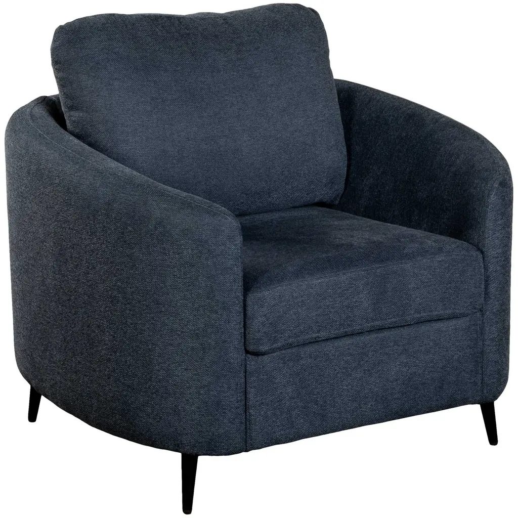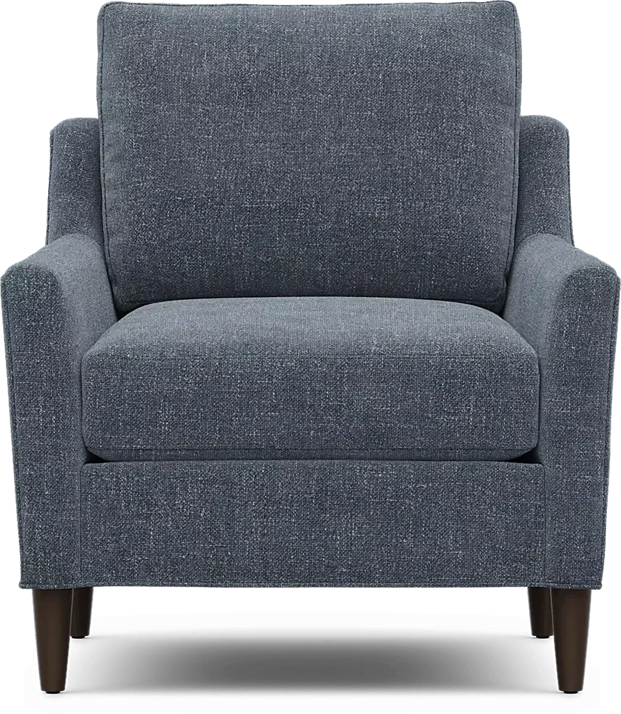 Casual grace with a sly glint of fashion-forward style in the Soho Place accent chair from Cindy Crawford Home are the keys to a trendy living room that adds an easy groove to an uptown zip. Upholstered in soft navy chenille, this seat features chic track arms and a reversible box back cushion. Tall, tapered legs create a perfectly poised appearance. Upholstery: 95% Polyester 5% Linen.