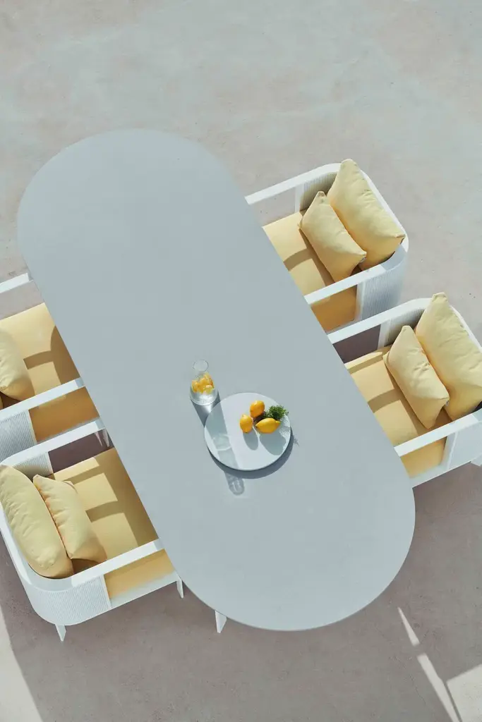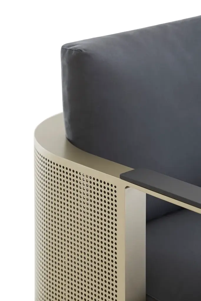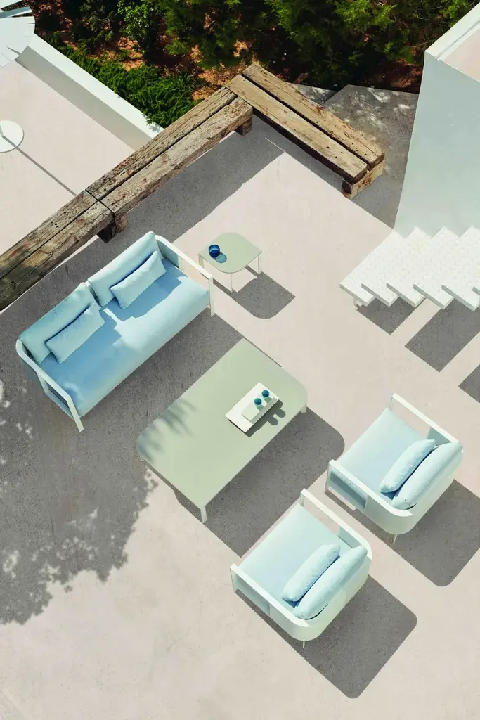SOLANAS is the new GANDIABLASCO collection born from the aesthetic sensibility and passion for the outdoors of Argentinean architect and designer Daniel Germani. Its an homage to SOLANAS, a beach located in Uruguay, where Daniel Germani used to spend his summers. A paradise with never-ending sunsets and beaches that disappear into the horizon. He also pays homage to his father, a man who was always ready to open the doors of his home to friends and family. Just as talented a chef as a host, this engineer by training with an extraordinary aesthetic sensibility designed the outside space of his house in Solanas to accommodate his numerous guests and for the enjoyment of his three passions: nature, family and gastronomy..Made of thermo-lacquered welded aluminium profiles.Porcelain.Polyurethane foam rubber covered with water-repellent fabric. Removable fabric cover.Collections colour sample: white, agate grey, cement grey, bottle green, gold, sand, bronze, wine red, blue grey, grey blue, quartz grey, anthracite and black.