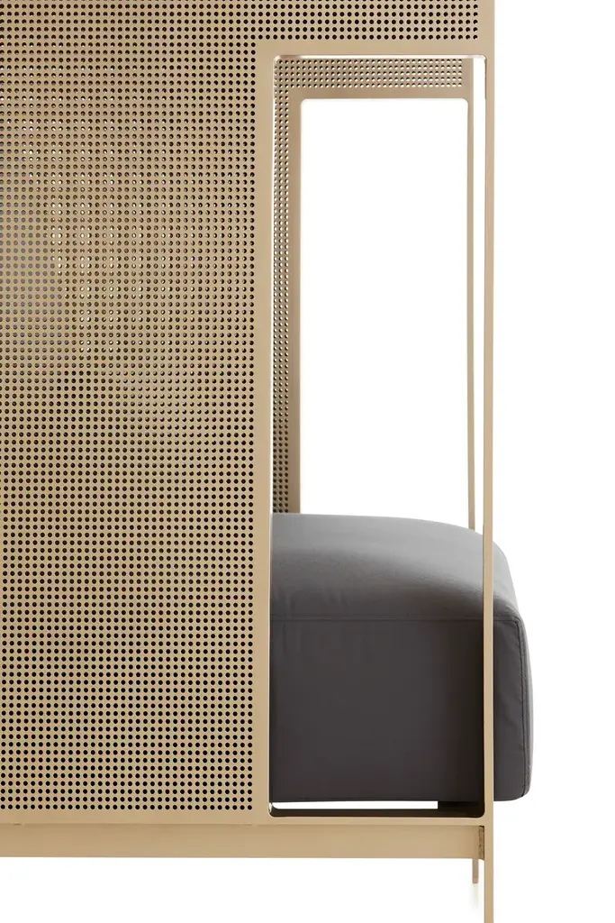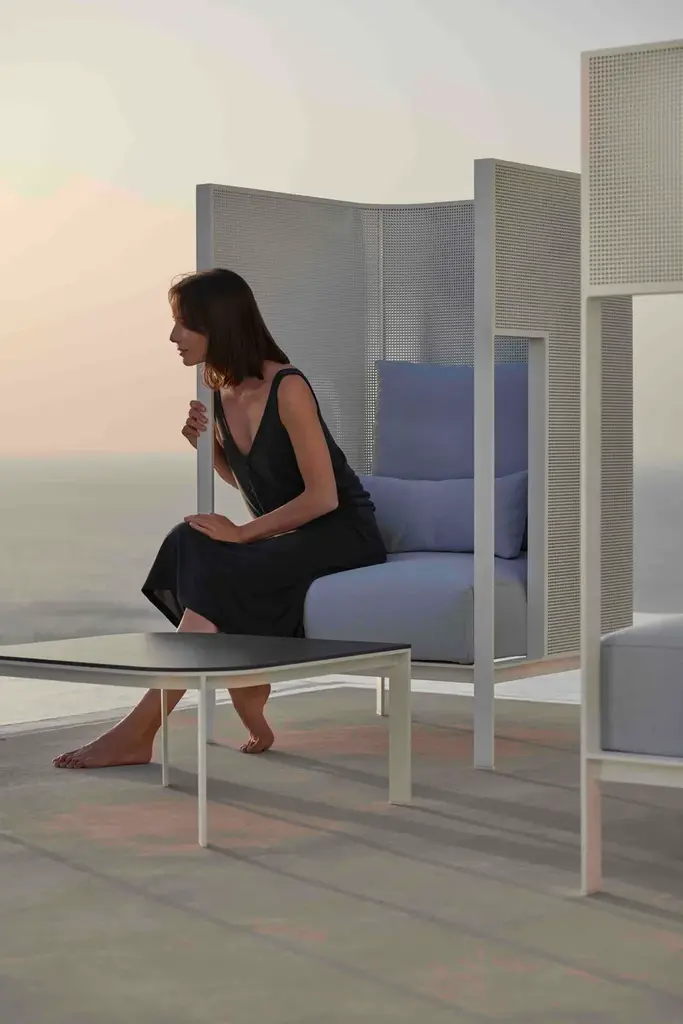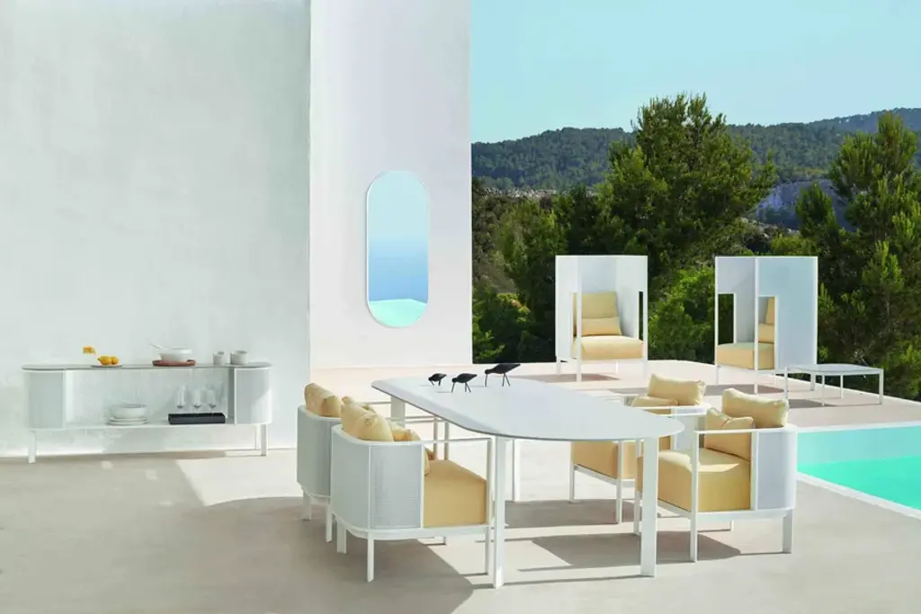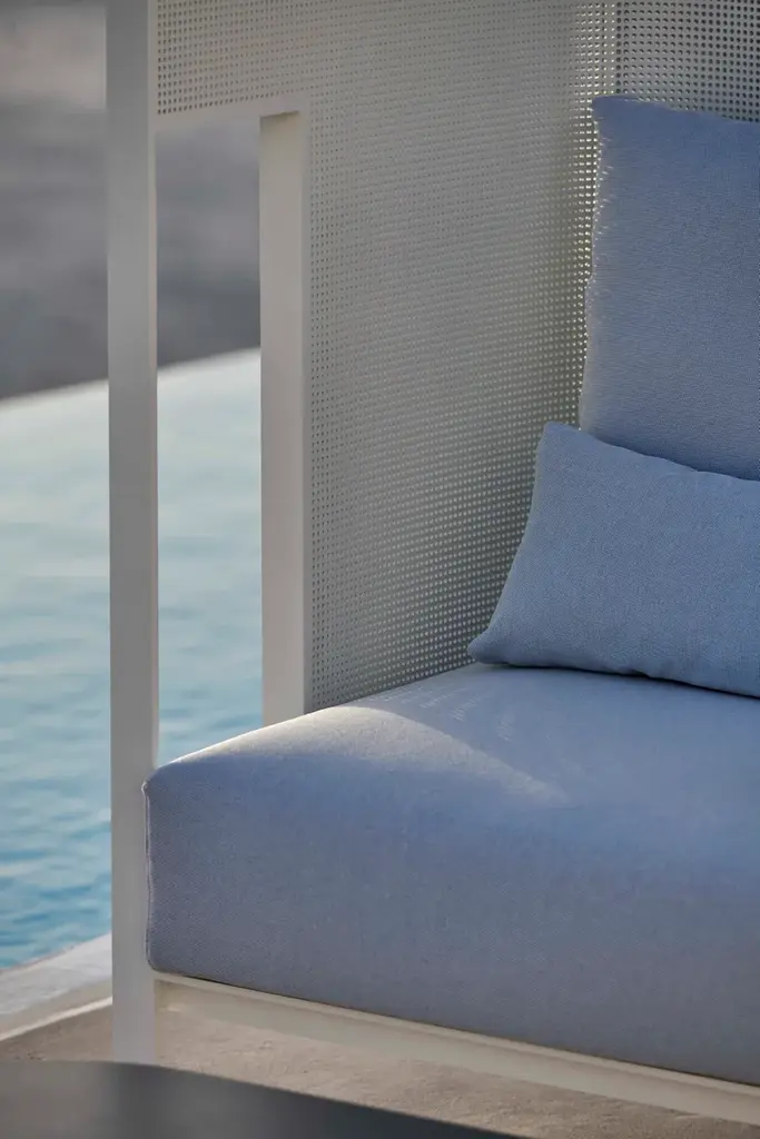 SOLANAS is the new GANDIABLASCO collection born from the aesthetic sensibility and passion for the outdoors of Argentinean architect and designer Daniel Germani. Its an homage to SOLANAS, a beach located in Uruguay, where Daniel Germani used to spend his summers. A paradise with never-ending sunsets and beaches that disappear into the horizon. He also pays homage to his father, a man who was always ready to open the doors of his home to friends and family. Just as talented a chef as a host, this engineer by training with an extraordinary aesthetic sensibility designed the outside space of his house in Solanas to accommodate his numerous guests and for the enjoyment of his three passions: nature, family and gastronomy..Made of thermo-lacquered welded aluminium profiles.Porcelain.Polyurethane foam rubber covered with water-repellent fabric. Removable fabric cover.Collections colour sample: white, agate grey, cement grey, bottle green, gold, sand, bronze, wine red, blue grey, grey blue, quartz grey, anthracite and black.