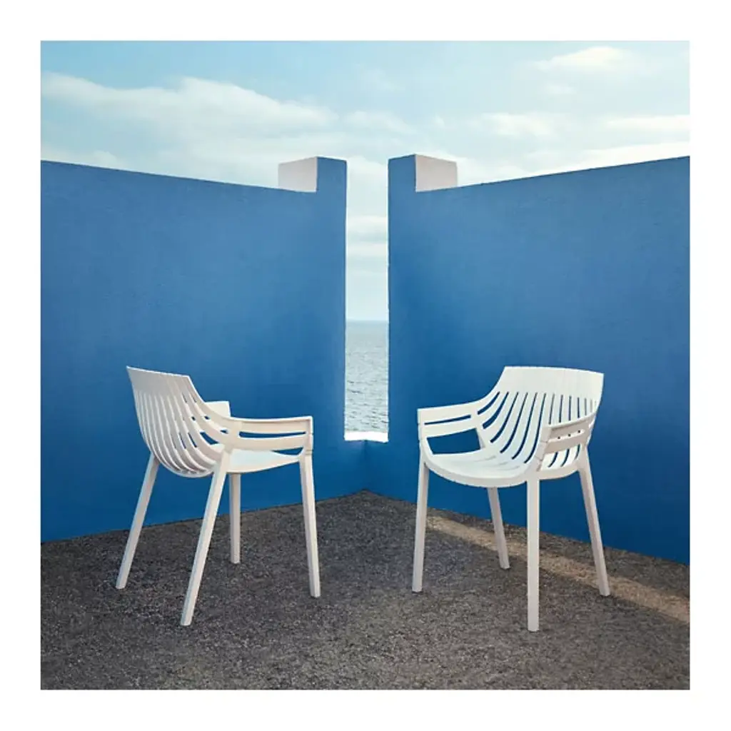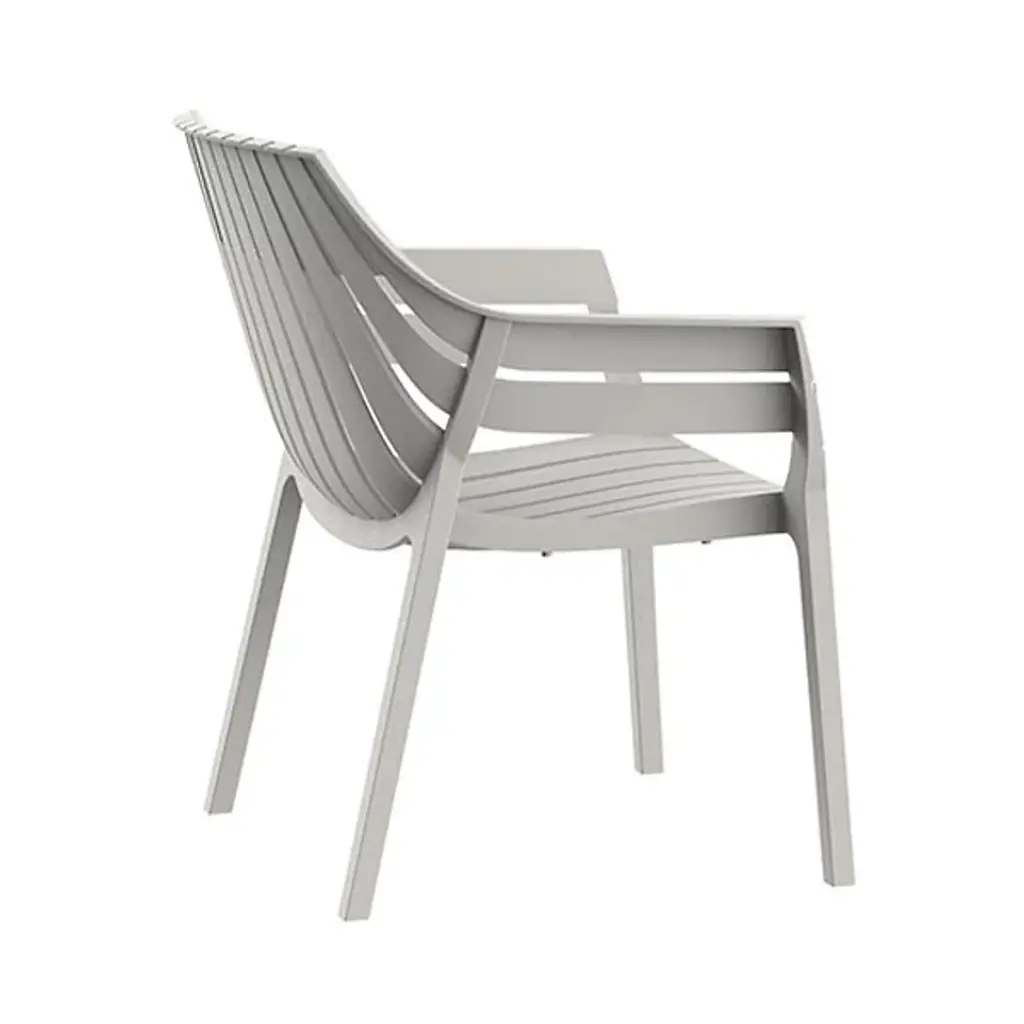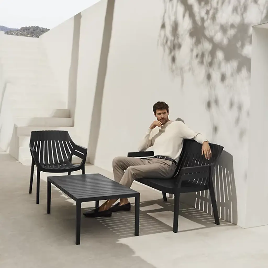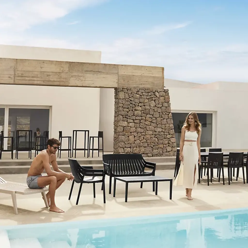 Relax into the contoured and refined simplicity of the Spritz Outdoor Lounge Chair from Vondom. A stylish and sleek-surfaced structure created by Archirivolto and inspired by the wooden fences near beaches, its four-legged frame is made in Spain from injected polypropylene with fiberglass. This robust construction is solid enough for outdoor environments and smoothly finished enough for inside display, while the sleek legs support a rounded shell seat of slightly spaced slats that draw the eye and promote a sense of ease.