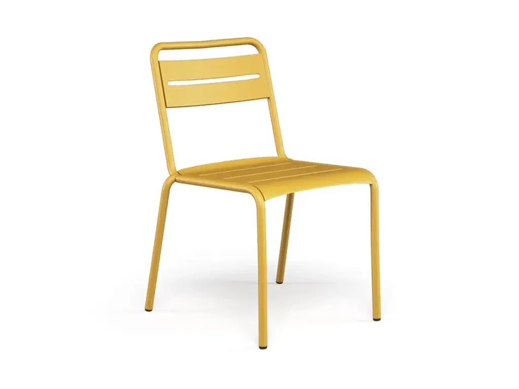 Star is an aluminium garden chair. Available version with integrated cushion.Star is a colourful and informal collection. The chairs are roomy and comfortable and are available with or without armrests. Both square and rectangular tables are available in a variety of sizes and have a hot dip galvanized sheet metal top with a reinforced metal frame under the edge. The collection consists of chair, bench, armchair, bar stool, armchair, sofa and tables. Star is a collection suited to many different outdoor environments, be they private or for Contract use and are adaptable to both large and small areas. Moreover, the news in the Star collection is the new totally aluminum look of chair and armchair, which makes them perfect for seaside contexts.Available colours: marine blue, military green, antique iron, matt white, black, maple red, ice white, grey/green, indian brown, dark blue, scarlet red, green, blue, curry yellow, taupe, cloud grey, cement, dark green, corten, sand