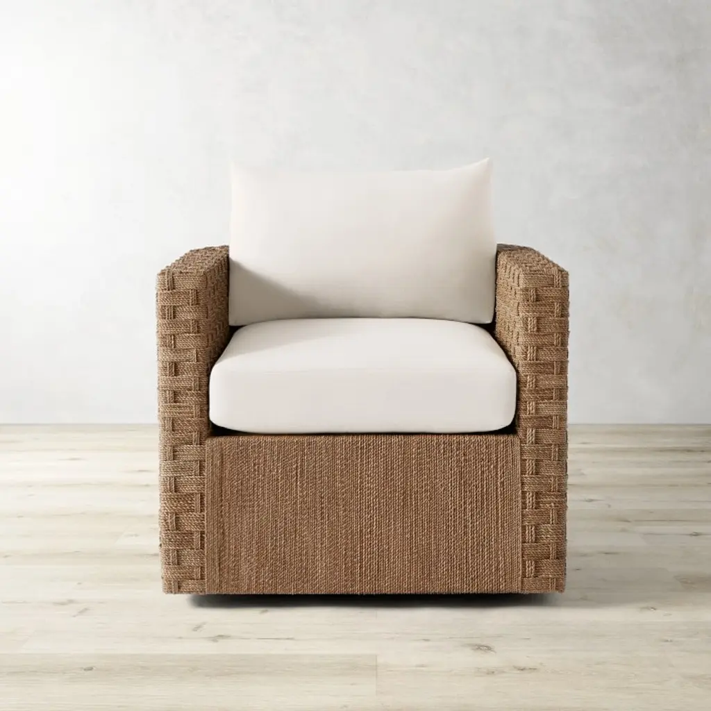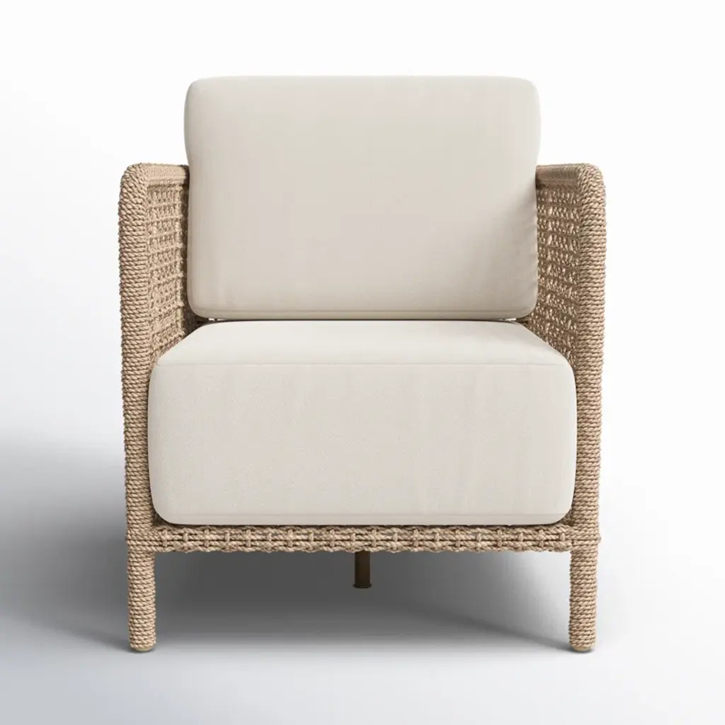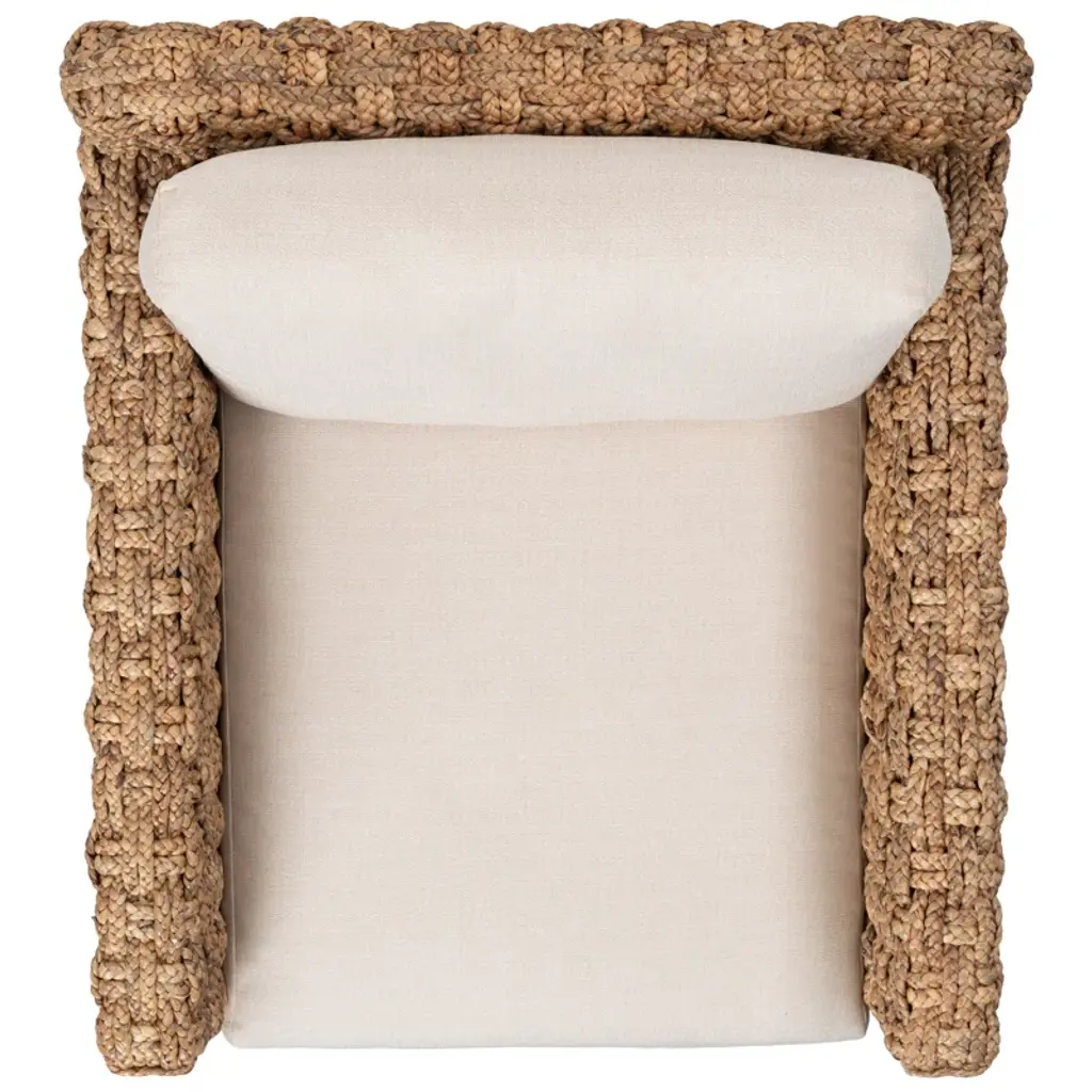 Bring a touch of British Colonial ambiance to your décor with this Steiner accent chair. A tropical twist on the classic arm chair, Steiner braided natural water hyacinth detail is absolutely stunning, and plush beige cushions emanate luxurious coastal calm.