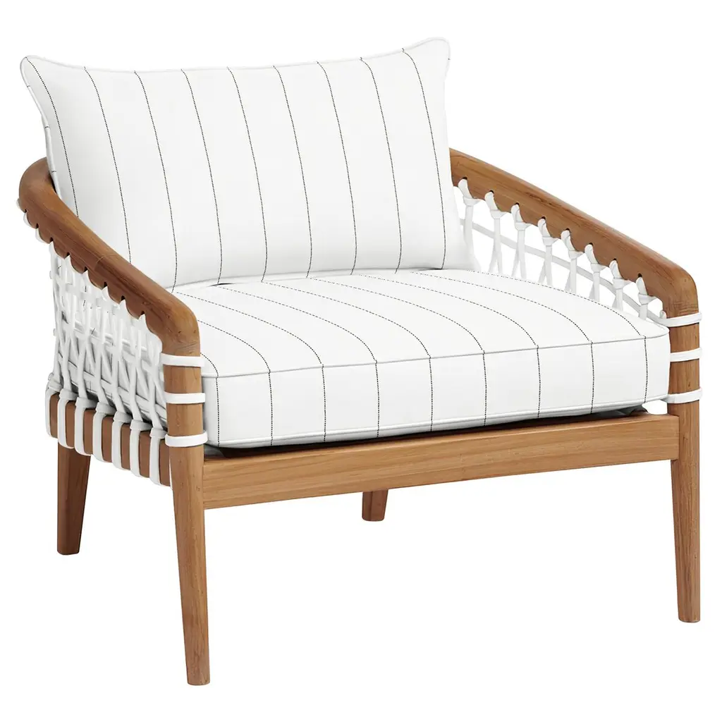 Exclusive to One Kings Lane: This rope accent chair can pair with any sofa, sectional, or loveseat style and is great in a pair. It is upholstered in Inside Out, an eco-friendly UV high-performance fabric, which repels stains, spills, bacteria, and mold. Constructed of teak, marine-grade rope, and reticulated foam cushions featuring an open-cell foam that allows water to drain, it ensures comfort and easy maintenance. Each style includes a custom outdoor cover constructed of heavy-duty Sunbrella canvas with elastic at the bottom to ensure a proper and snug fit. Each piece is handcrafted by skilled artisans in High Point, NC.
