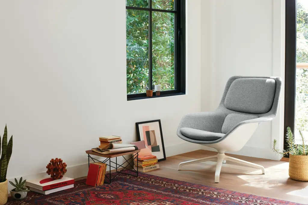 Thanks to its three-layer construction, the Striad Lounge Chair (2016) achieves that perfect balance of structure and comfort. It comprises a rigid outer shell merged with a natural-fiber inner shell; both are fully upholstered then topped with deep-set, dual-density cushions that add supple support. Available in a range of finishes, fabrics, and leathers appropriate for a multitude of spaces, the Striad High Back Lounge Chair also comes in a choice of bases.