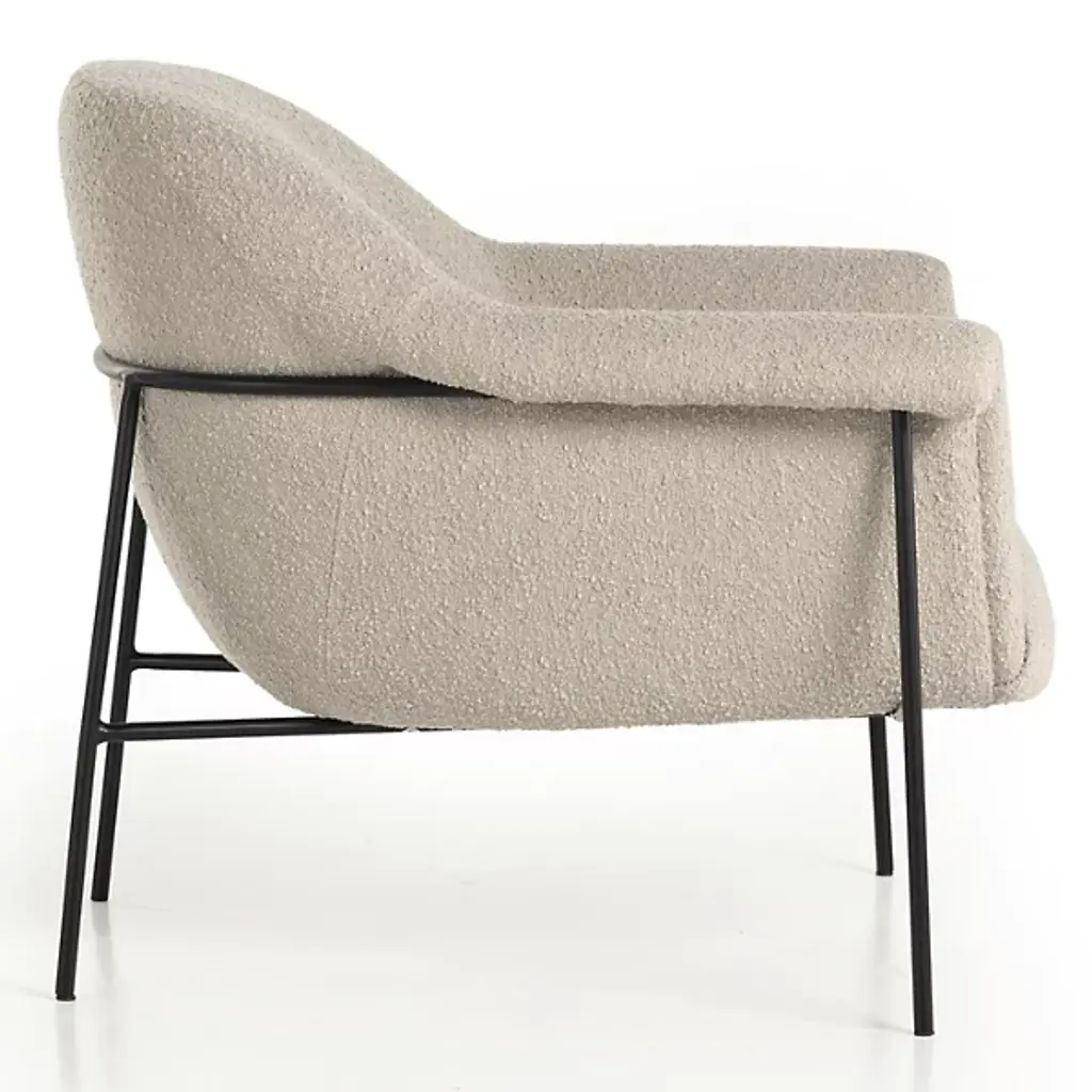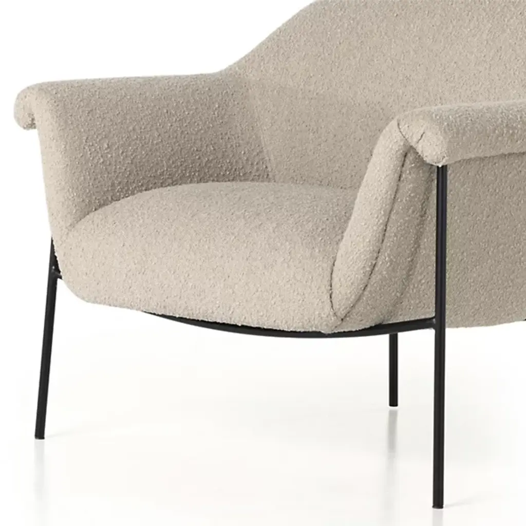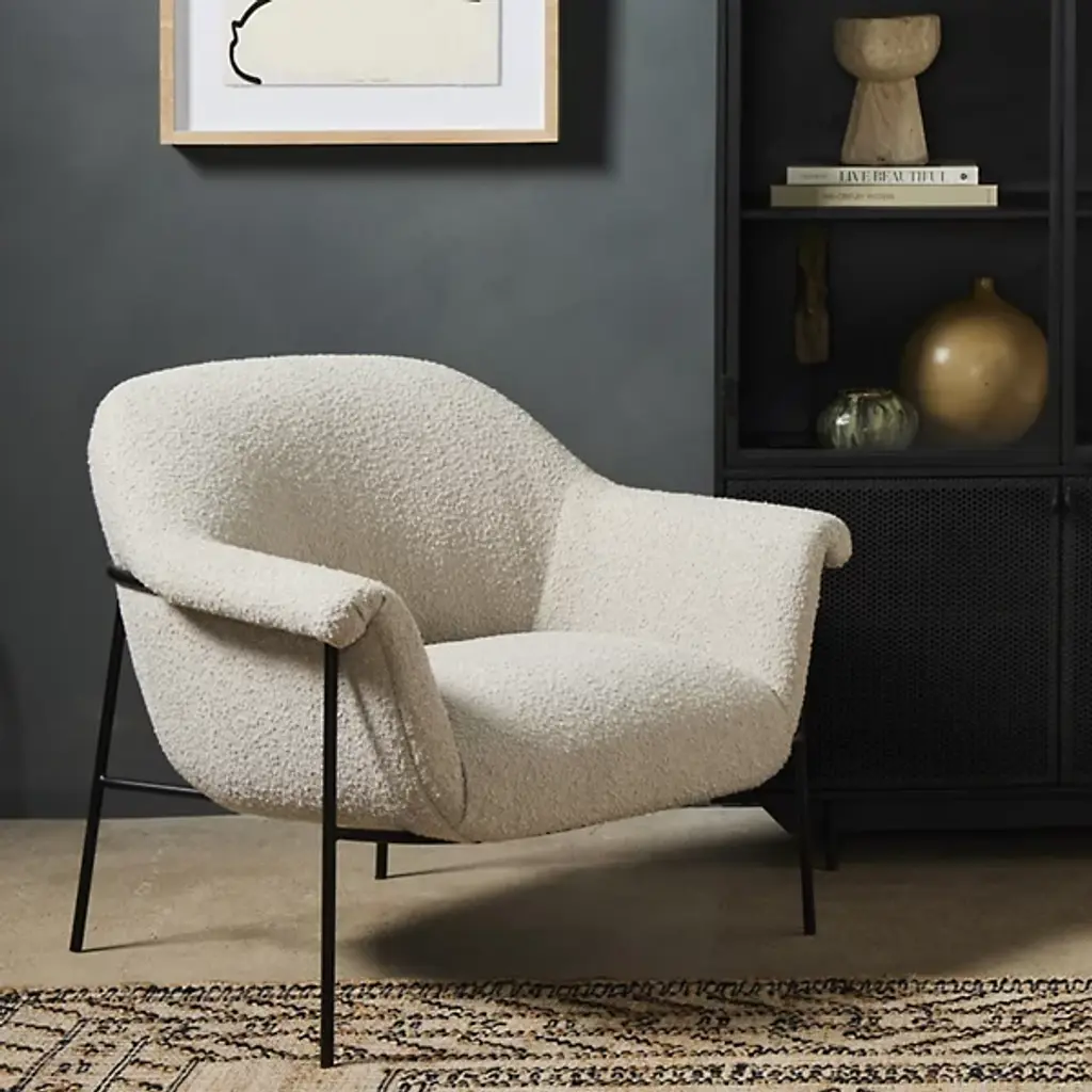 Presenting the Suerte Lounge Chair from Four Hands. Suerte’s upholstery gracefully curves around the ultra-slender framework, creating a visual appearance that embodies mid-century modern sophistication. With fine lines, your lounge becomes a timeless addition to your interior. The fabric, a blend of 95% polyester and 5% polyacrylic, is not only comfortable but practical as well. This lounge chair combats spills, stains, and wear from high traffic. Crafted with durability in mind, the iron frame adds sturdiness.