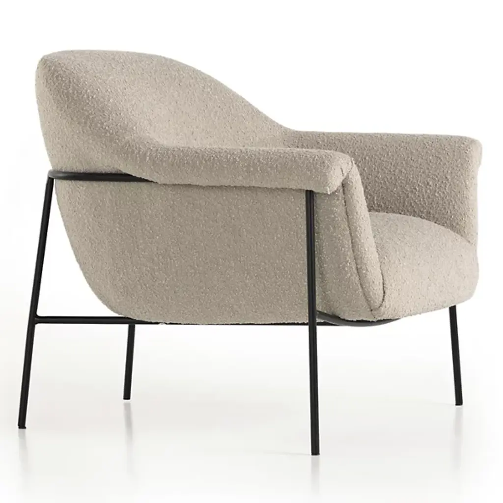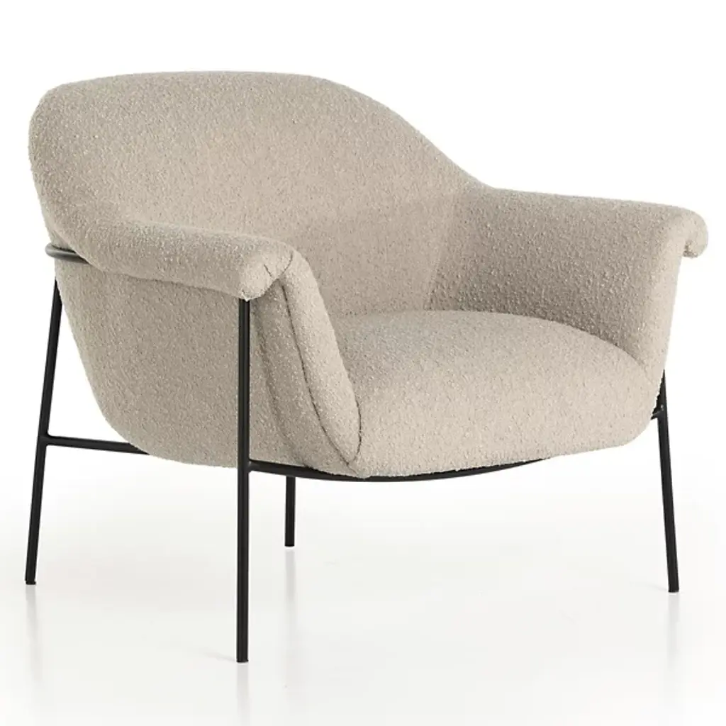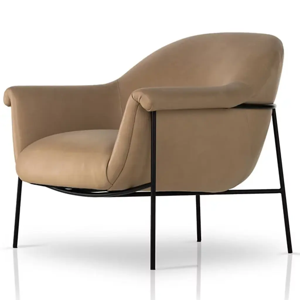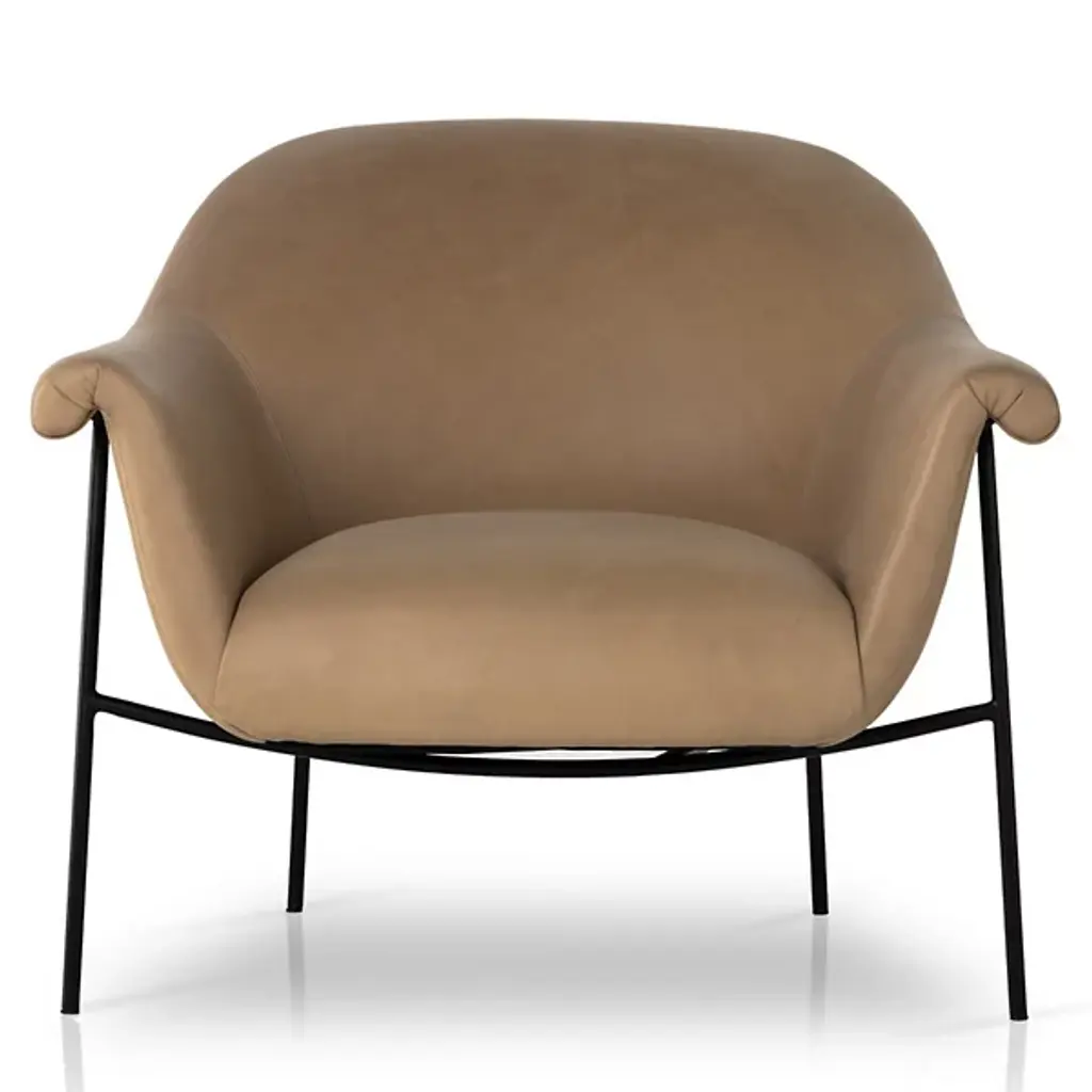 Presenting the Suerte Lounge Chair from Four Hands. Suerte’s upholstery gracefully curves around the ultra-slender framework, creating a visual appearance that embodies mid-century modern sophistication. With fine lines, your lounge becomes a timeless addition to your interior. The fabric, a blend of 95% polyester and 5% polyacrylic, is not only comfortable but practical as well. This lounge chair combats spills, stains, and wear from high traffic. Crafted with durability in mind, the iron frame adds sturdiness.