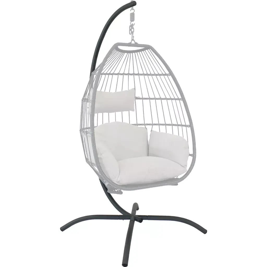 Sway in the comfort of an egg or basket chair without having to put holes in the ceiling when you purchase this stand featuring a sturdy, curved leg base. This egg chair stand accommodates smaller egg or basket chairs as well as larger ones because of its wider base. The durable, powder-coated steel construction ensures the stand will be sturdy and long-lasting against mild wind, rain, snow, sun, and extensive use. This stand won't crack, break, or chip easily when used outdoors! Use this stand with your favorite chair in a variety of indoor or outdoor locations. It's a great option for the living room, bedroom, patio, yard, garden, or any other indoor or outdoor space in need of an uplifting, fun, and relaxing feature. Enjoy beautiful days in the sun or uplift your indoor aesthetic with this egg chair stand! All hardware and detailed instructions for assembly are included upon purchase.• VERSATILE DESIGN TO ACCOMMODATE HANGING CHAIRS: This stand measures 38" W x 41.5" D x 78.5" H and weighs 35.6 lbs. This durable and stable stand can support up to 265 lbs.• DURABLE CONSTRUCTION: This dependable stand is made of powder-coated steel for long-lasting strength.• EASY TO ASSEMBLE: Easily hang a hammock chair from this stand without worrying about a ceiling mount. All of the required hardware is included so it is easy to assemble the stand using the step-by-step instructions.• FOR A VARIETY OF LOCATIONS: This stand can be used indoors or outdoors. It's a convenient addition to the patio, sunroom, backyard, or deck.• WORRY-FREE PURCHASING: Sunnydaze Decor backs its products with a 1-year manufacturer's warranty.