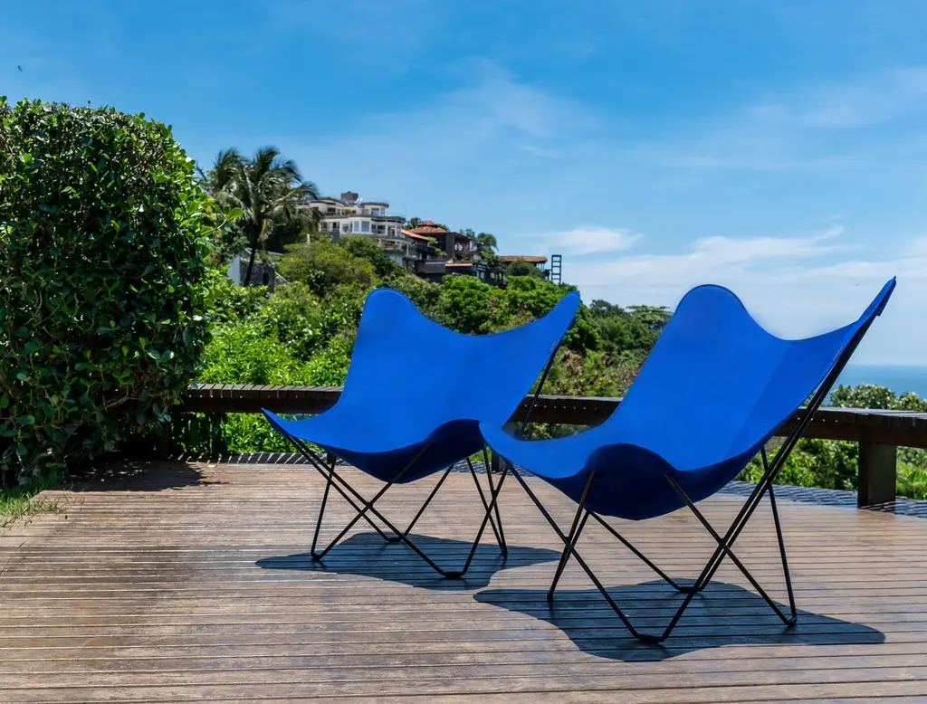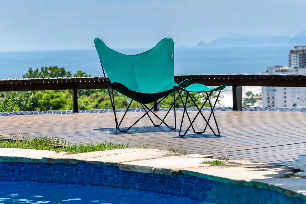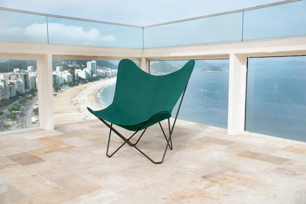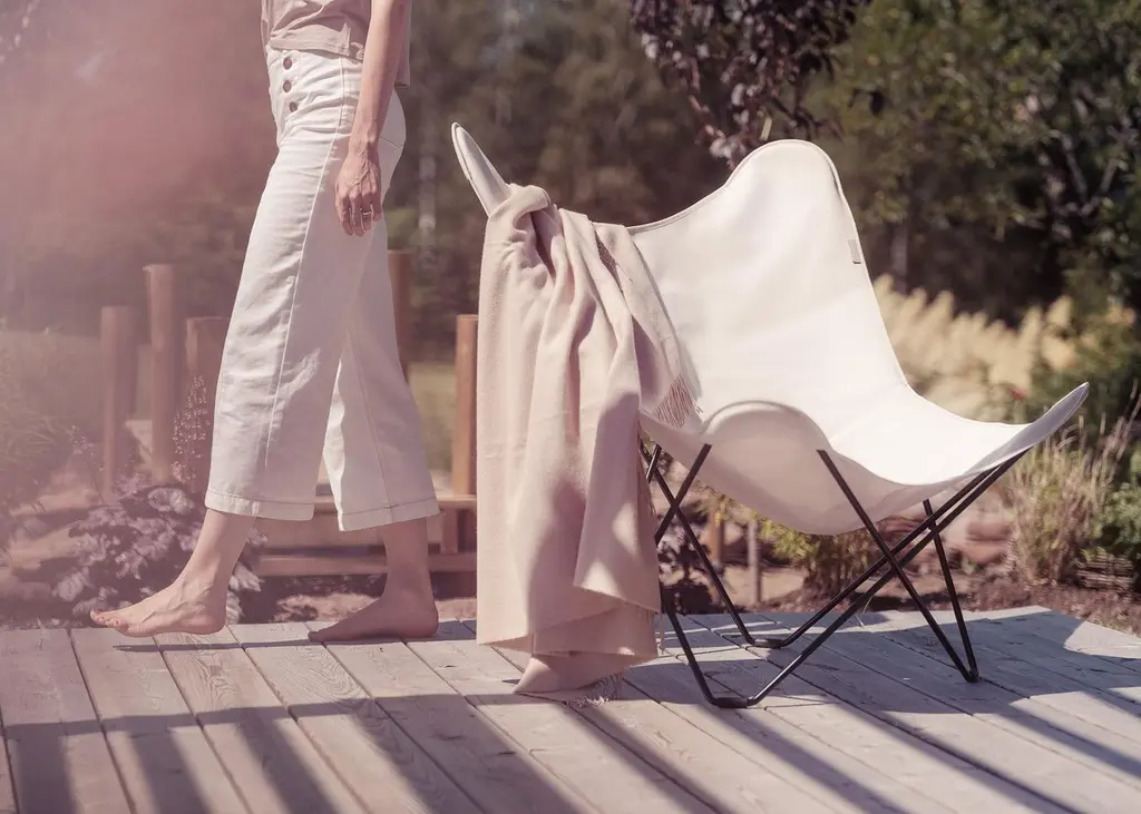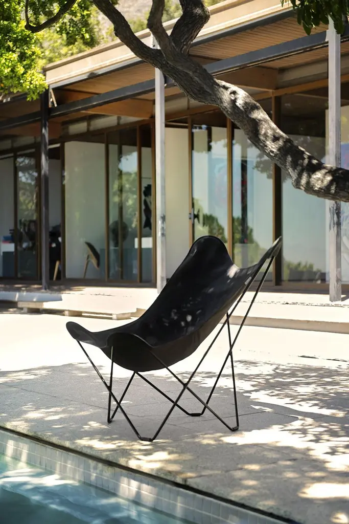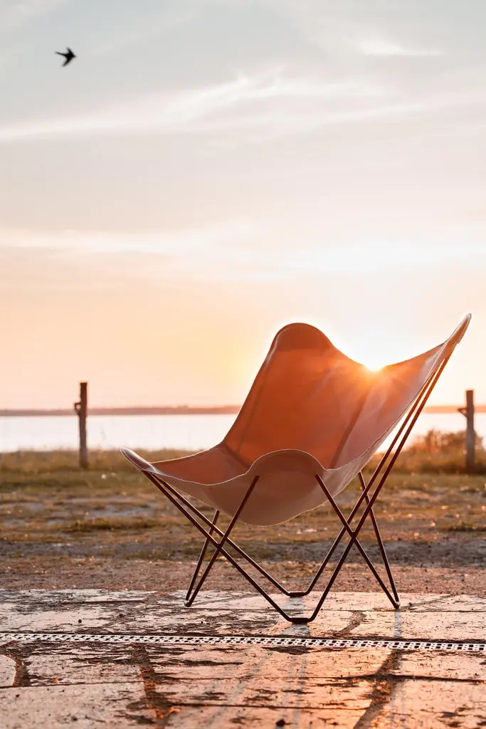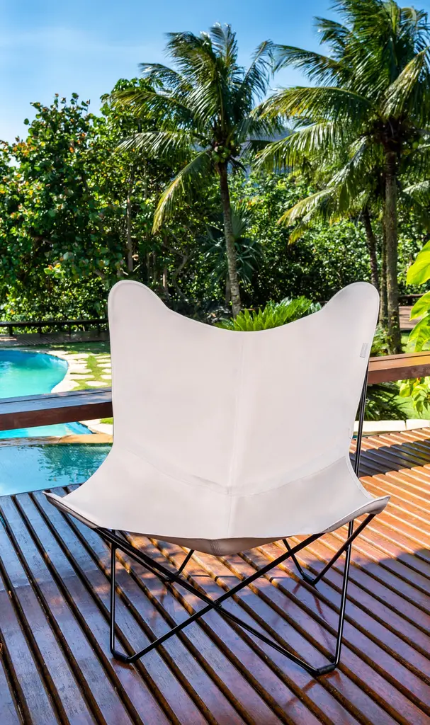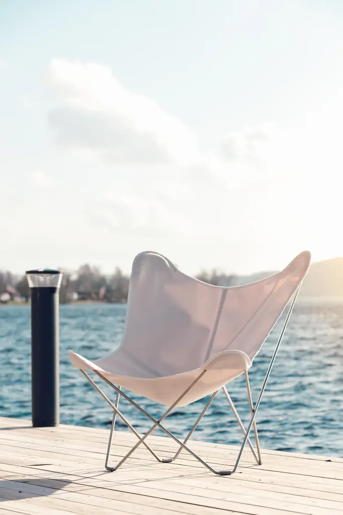 Sunshine Mariposa Outdoor Lounge Chair by Cuero DesignDimensions: D 86 x W 87 x H 92 cm.Materials: Upholstery and metal.Finish: Oyster upholstery and grey frame.Weight: 12 kg.Available in different upholstery and metal color options and finishes. Prices may vary. Please contact us.We’ve spent 15 years trying more than 30 versions of the classical butterfly chair. Here is the best one in the world’s most renowned outdoor fabric.If you want to lounge outside in style and are tired of moving cushions and covers in and out of rain storage, this chair is for you.It’s probably the only proper outdoor butterfly chair in the World. This beautiful, lightweight BKF has a cover made in the famous Sunbrella fabric that is highly resistant to UV light and rain. The frame has zinc protection under its coat to protect it from rust.The days of carrying furniture in and out of storage are over! Just leave it as it is and enjoy your garden or balcony whenever you want.Cuero DesignWe make furniture that we want to have in our own homes. Everything has to be comfortable, beautiful, and very high quality. Second-generation family business.Since 1986 - My father started importing luxury leather goods from South America to Sweden. He eventually discovered the butterfly chair which is a classical design from Argentina and became obsessed. 15 years of his life were dedicated to improving its shape and quality. Agustina is from Patagonia and Nils is from Sweden.