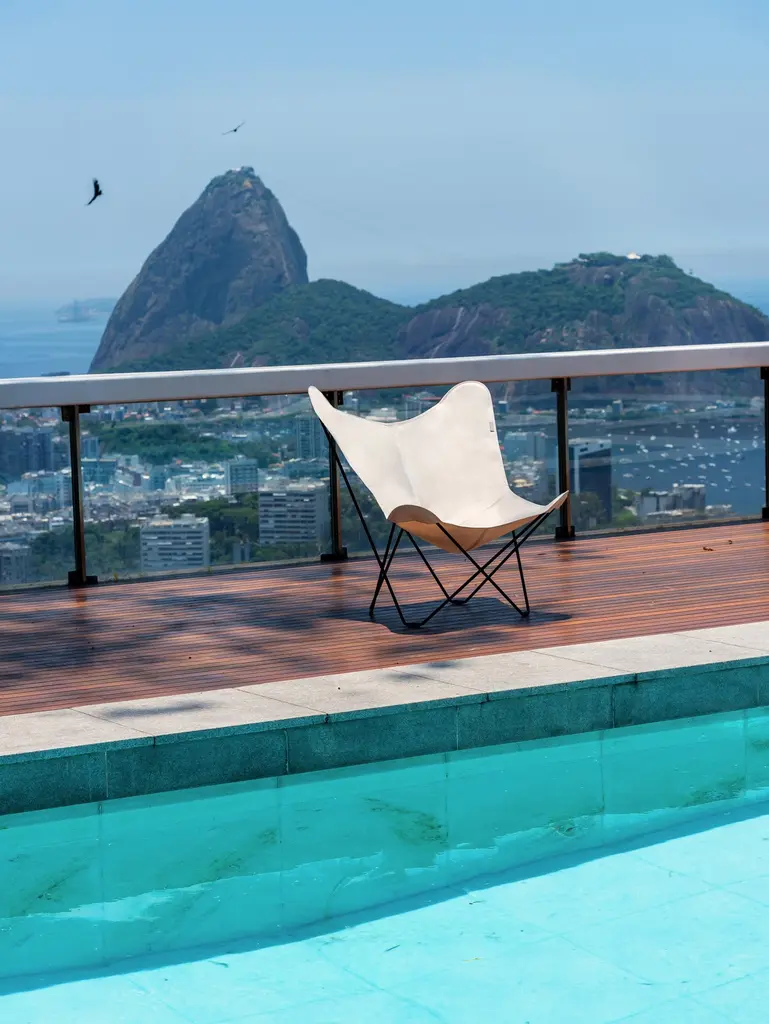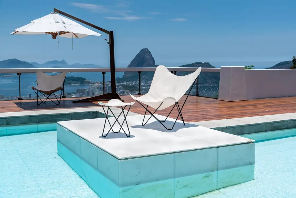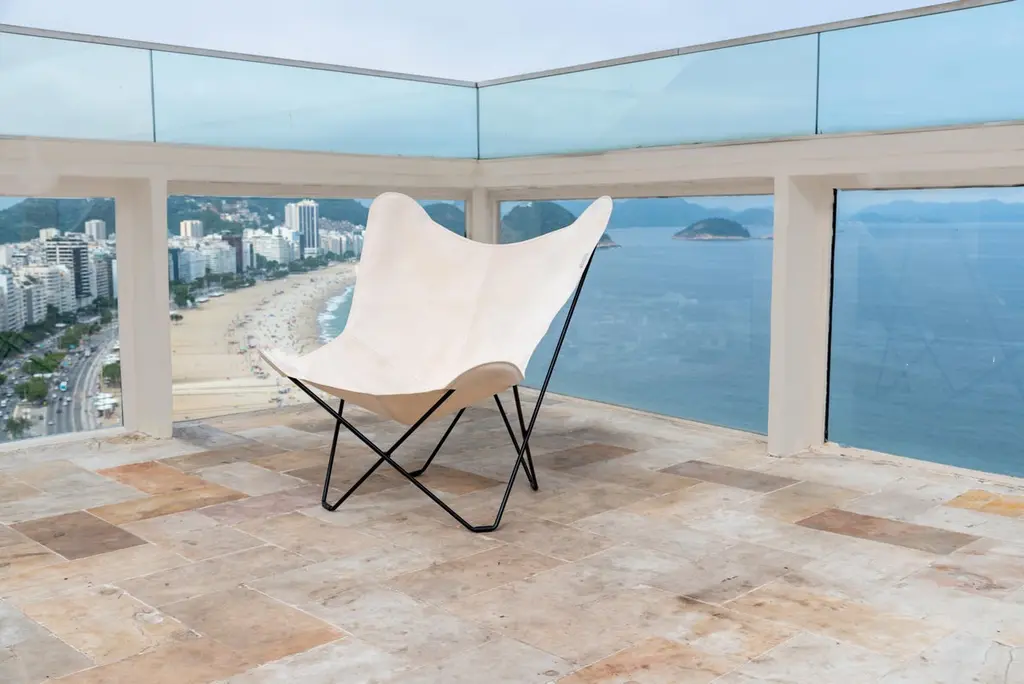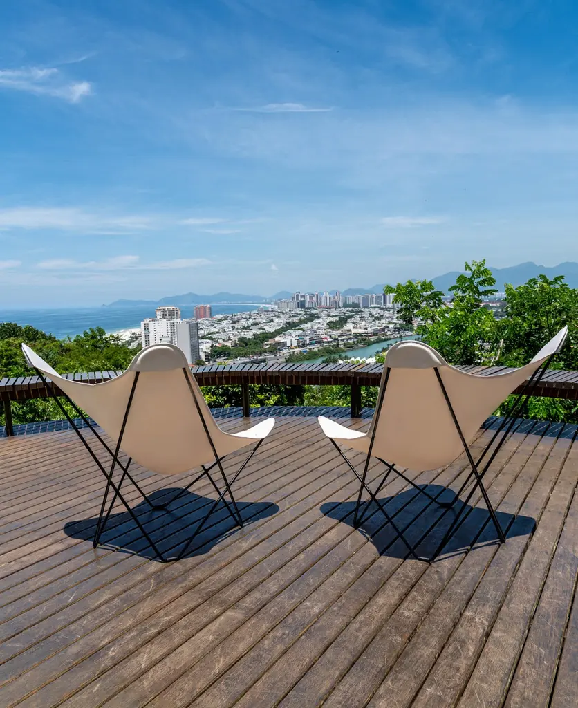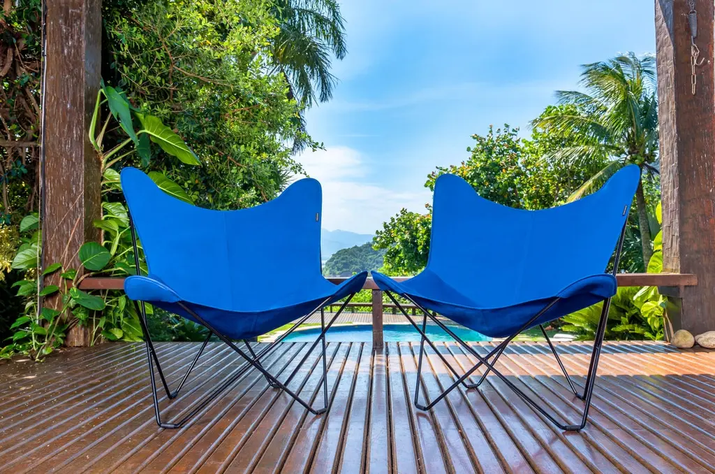 Sunshine Mariposa Outdoor Lounge Chair by Cuero DesignDimensions: D 86 x W 87 x H 92 cm.Materials: Upholstery and metal.Finish: Oyster upholstery and black frame.Weight: 12 kg.Available in different upholstery and metal color options and finishes. Prices may vary. Please contact us.We’ve spent 15 years trying more than 30 versions of the classical butterfly chair. Here is the best one in the world’s most renowned outdoor fabric.If you want to lounge outside in style and are tired of moving cushions and covers in and out of rain storage, this chair is for you.It’s probably the only proper outdoor butterfly chair in the World. This beautiful, lightweight BKF has a cover made in the famous Sunbrella fabric that is highly resistant to UV light and rain. The frame has zinc protection under its coat to protect it from rust.The days of carrying furniture in and out of storage are over! Just leave it as it is and enjoy your garden or balcony whenever you want.Cuero DesignWe make furniture that we want to have in our own homes. Everything has to be comfortable, beautiful, and very high quality. Second-generation family business.Since 1986 - My father started importing luxury leather goods from South America to Sweden. He eventually discovered the butterfly chair which is a classical design from Argentina and became obsessed. 15 years of his life were dedicated to improving its shape and quality. Agustina is from Patagonia and Nils is from Sweden.