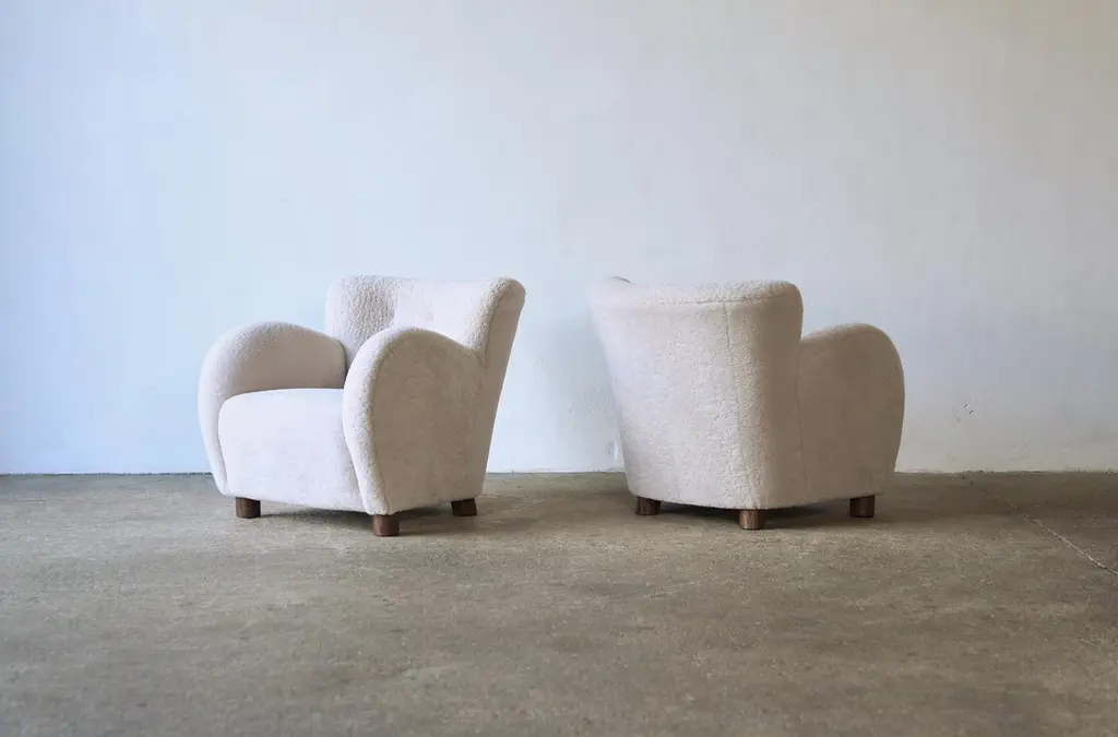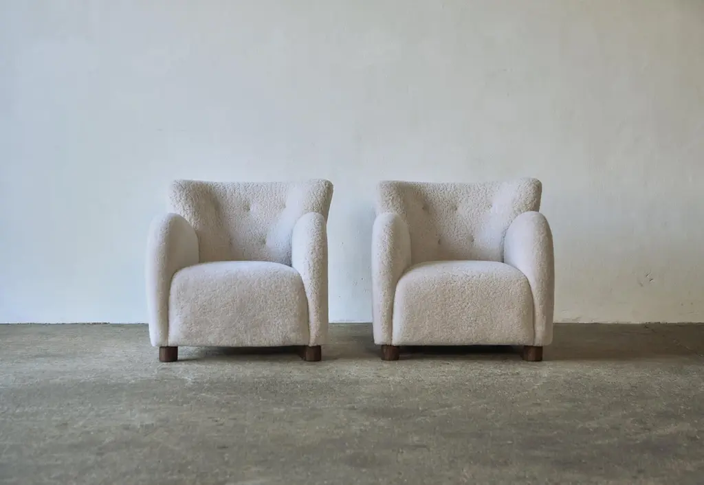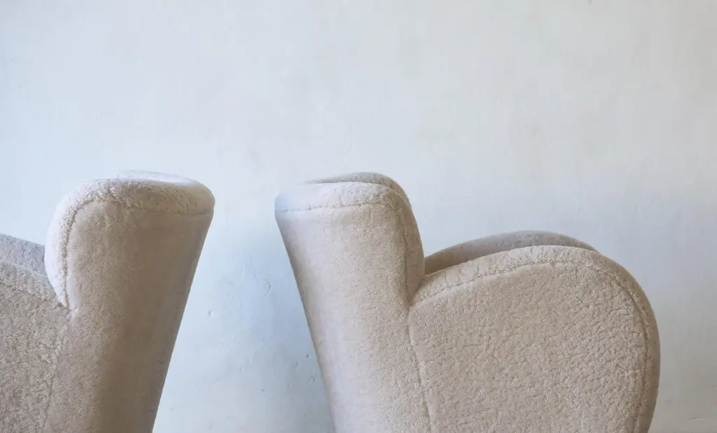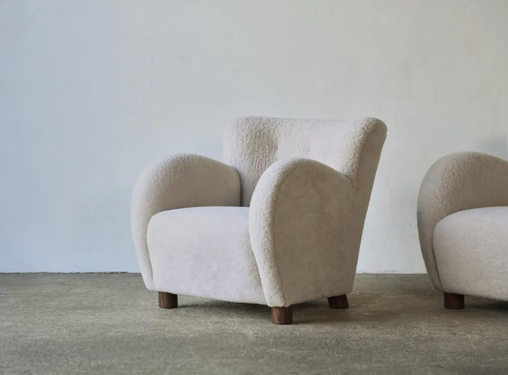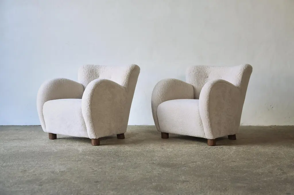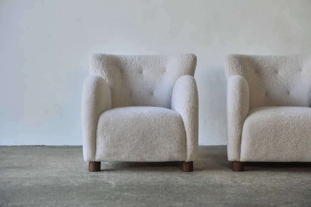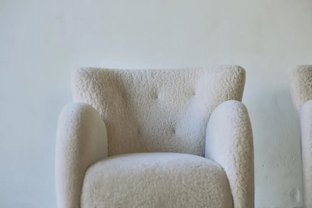 Superb Pair Of Lounge Chairs, Upholstered In Natural Sheepskin