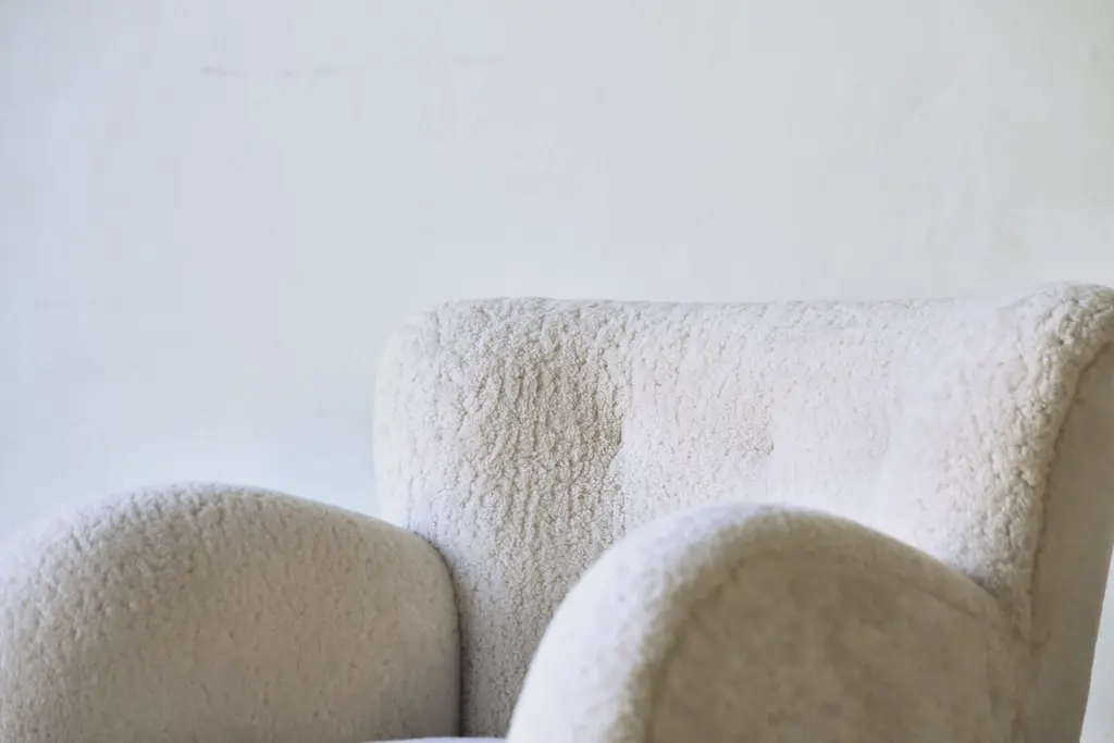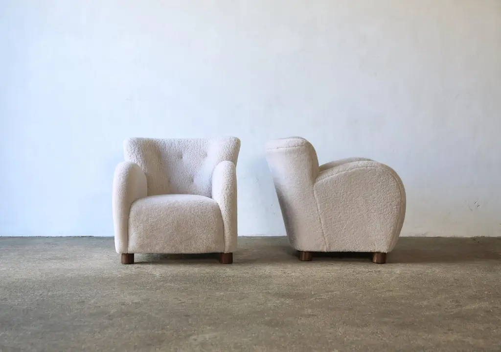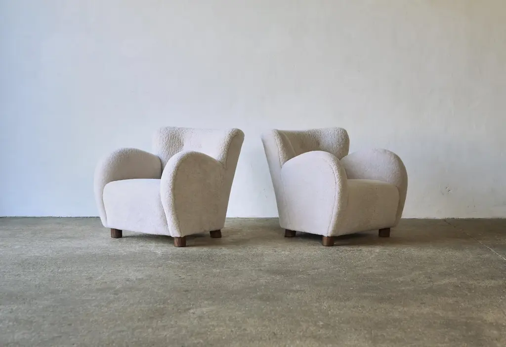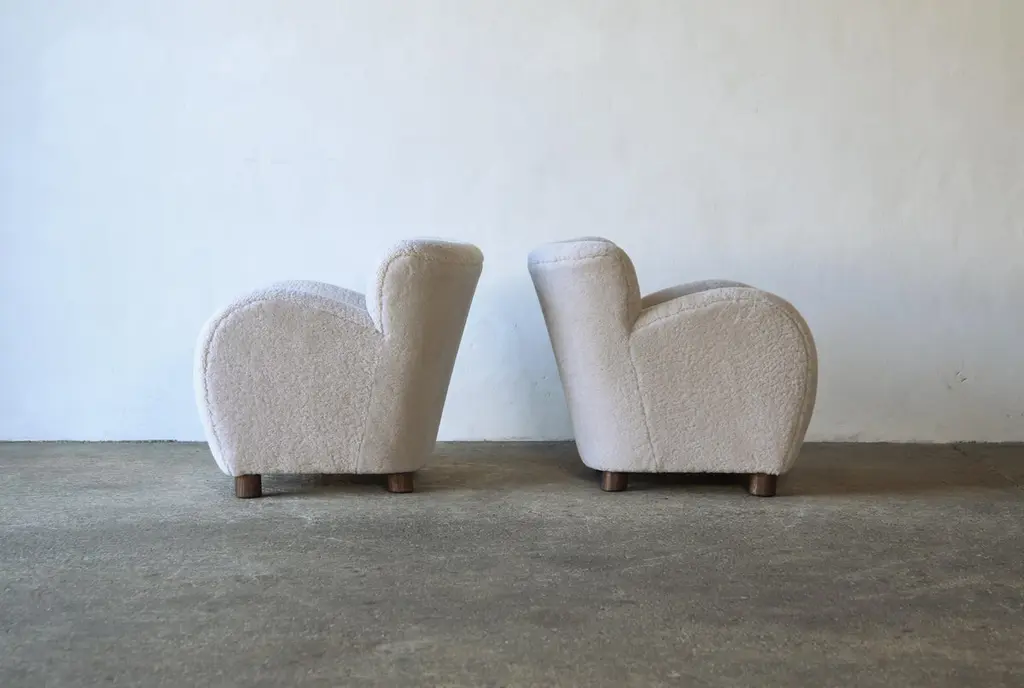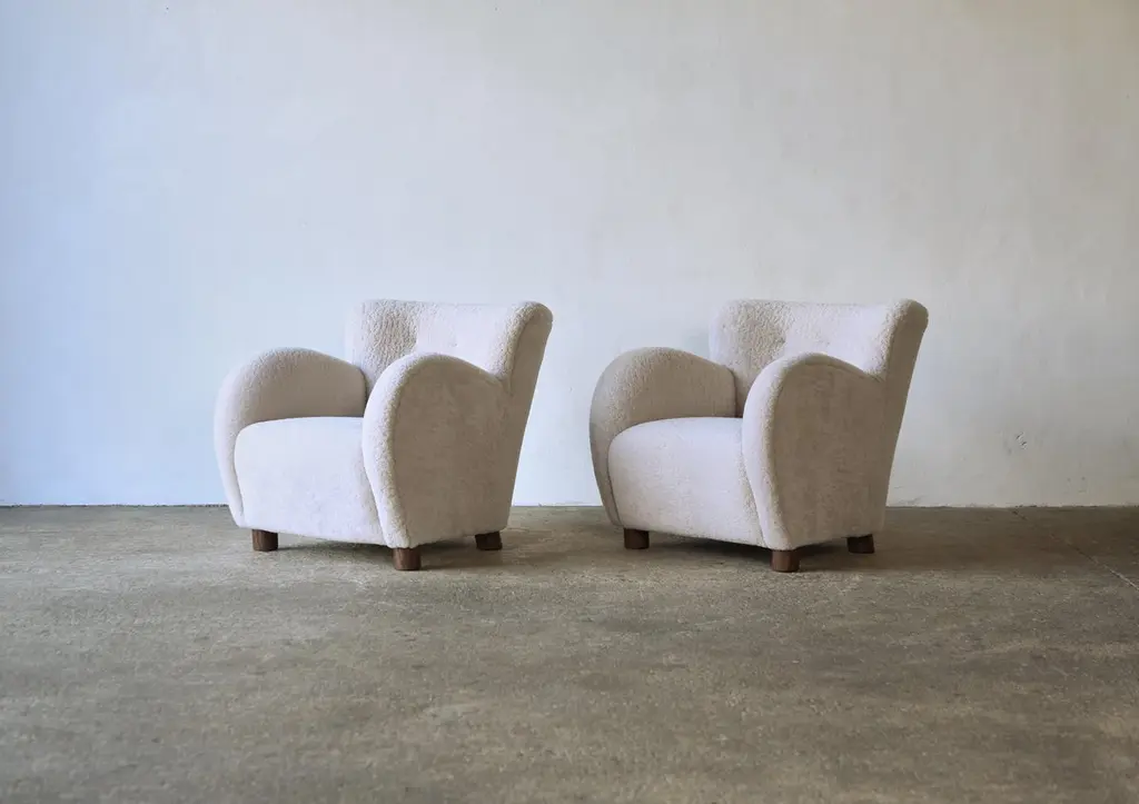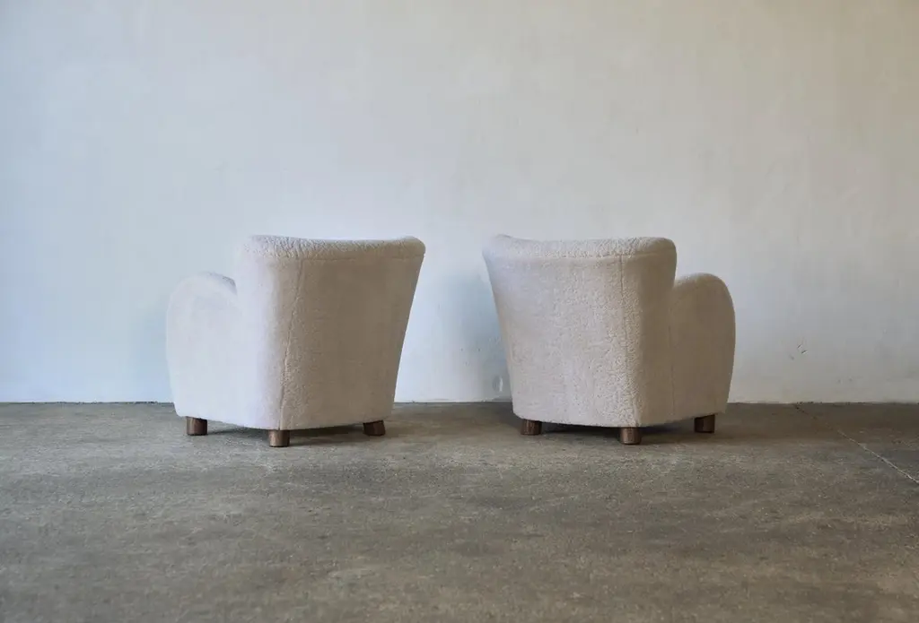 Superb Pair Of Lounge Chairs, Upholstered In Natural Sheepskin