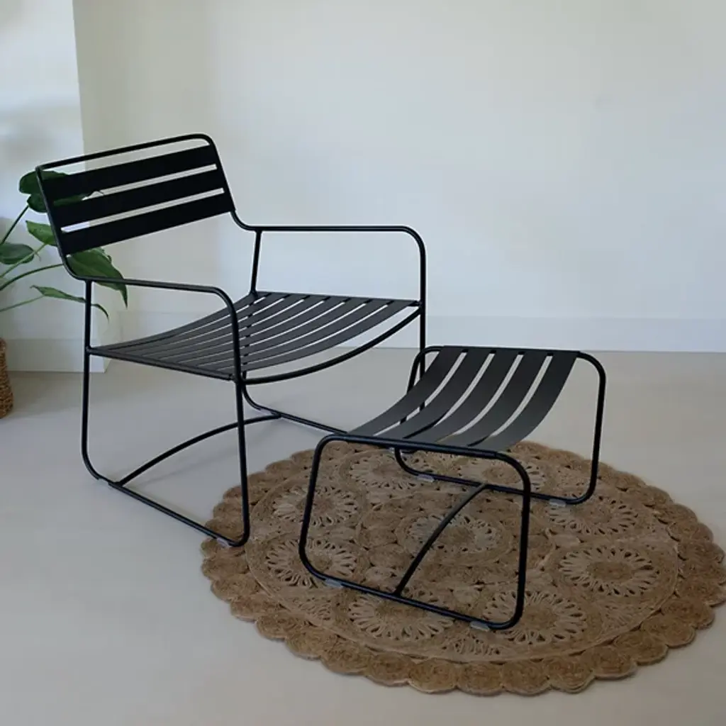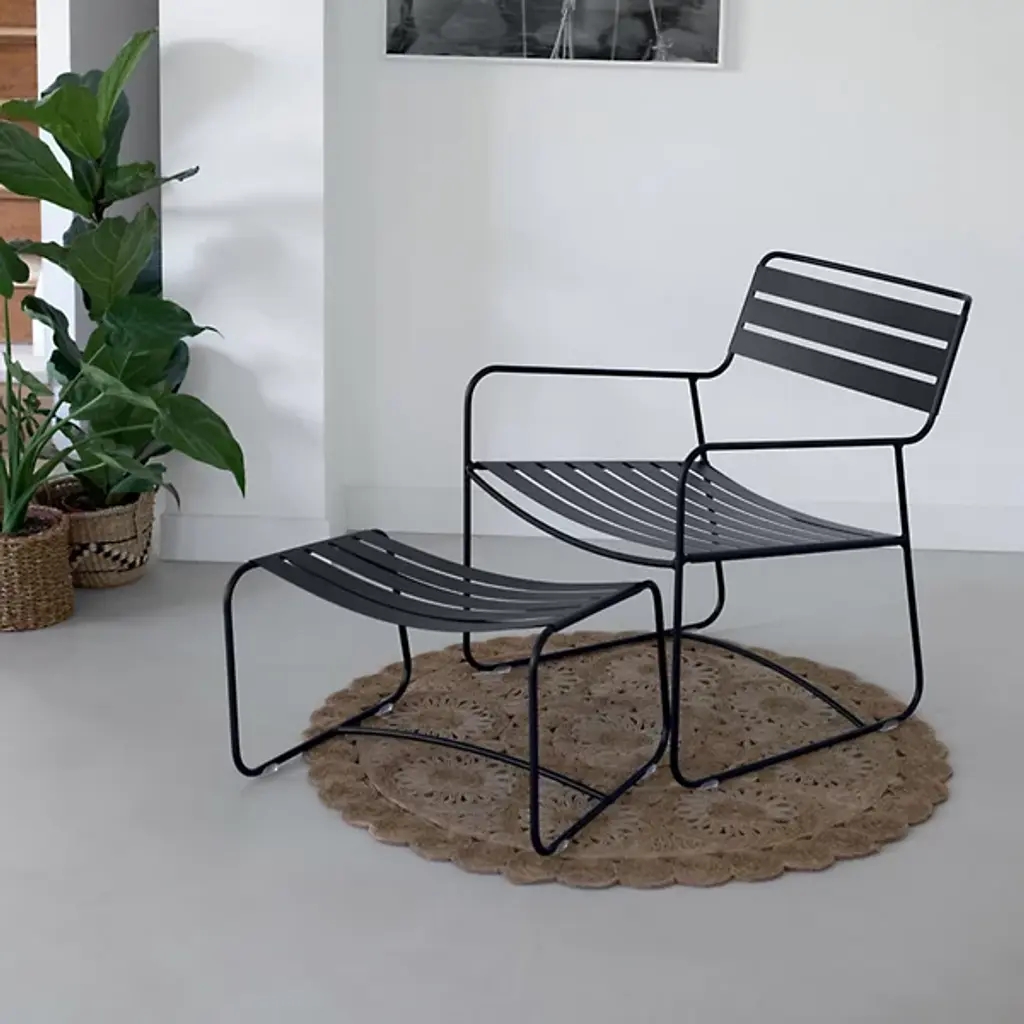 Keep the Surprising comfort coming. The Surprising Footrest by Fermob complements the design of the lounge chair and cradles your feet with curving bands of sheet Steel. The minimal Steel rod frame tilts the bands forward just so, to either support your stretched-out legs or act as a comfortable supplemental seat. When not in use, this footstool can be easily tucked away underneath the chair. A durable, anti-UV powder coat finish gives you both the pop of color you desire for an outdoor living space and keeps the footstool protected and weather-resistant, for enduring comfort and style year after year.