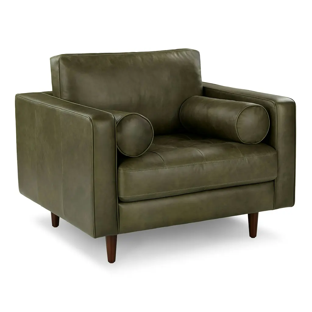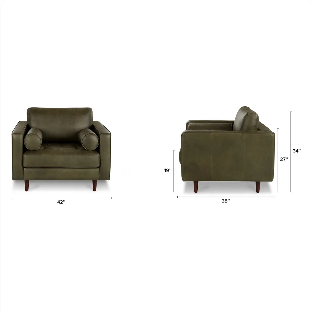 Sven 42" Tufted Leather Lounge Chair - Charme Green