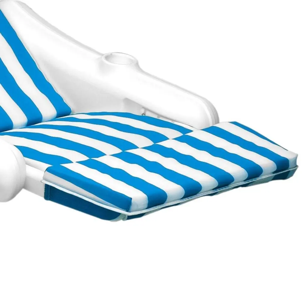 The SunChaser Padded Luxury Lounge Chair is a pool lounger featuring a molded U Frame and rounded pontoon design with a full length pad and extra thick, integrated pillow! The chair offers quick and easy assembly and the components are durable and easy to keep clean. It's sure to provide hours of rest and relaxation and look good for many seasons. The unique design prevents any need for inflation; eliminating hassling pumps, leaky valves, or any potential puncture issues. Voted as Best Value by the Wall Street Journal! SunChaser padded luxury chair float No inflation needed Features a molded frame and pontoon design with comfortable woven sling and integrated pillow Durable, UV and chemical resistant, and easy to keep clean Quick and easy assembly Includes a cup holder for ultimate relaxation Color: Blue/White Dimensions (L x W): 52 x 32 inches Manufacturer warranty: 1-year warranty Quantity: 2
