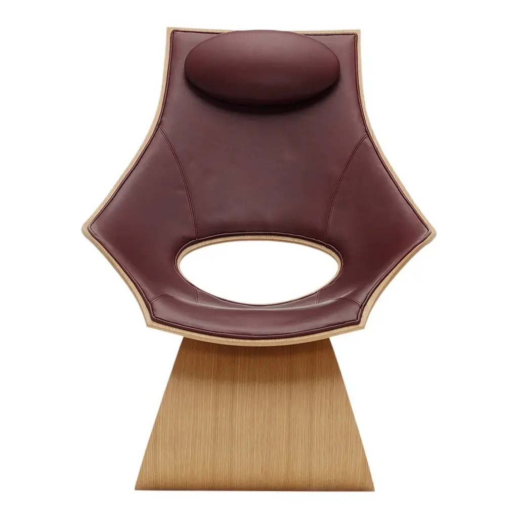 TA001P - Dream Chair - Front Upholstered Designer: Tado Ando (2013) Manufactured by: Carl Hansen & Son Danish craftsmanship meets Japanese design traditions in Tadao Ando's Dream Chair – a lounge chair inspired by the Japanese architect's desire to encourage people to take time to dream.The culmination of a close collaboration between Tadao Ando and the furniture experts at Carl Hansen & Søn, the Dream Chair is a tribute to Hans J. Wegner, the master of chair design. The project has pushed the boundaries of three-dimensional plywood, resulting in a sculptural and comfortable lounge chair created using a single material. The chair's unusual floating expression naturally attracts attention. Its simple lines and exacting design are reminiscent of Tadao Ando's architecture, while the organic curves and expansive surfaces imbue the unique shape with ample space for personal reflection. This upholstered version of the Dream Chair features a pillow and front available in a wide range of leathers or fabrics. Consult the Carl Hansen Wood & Fabric Guide for more info on materials (PDF). Please call for information and to order a custom chair: 800.688.0974.