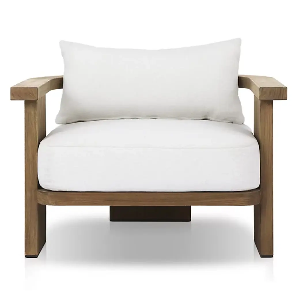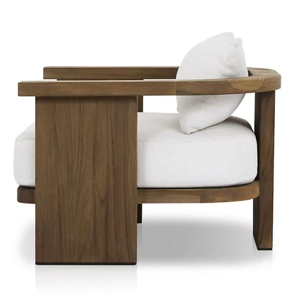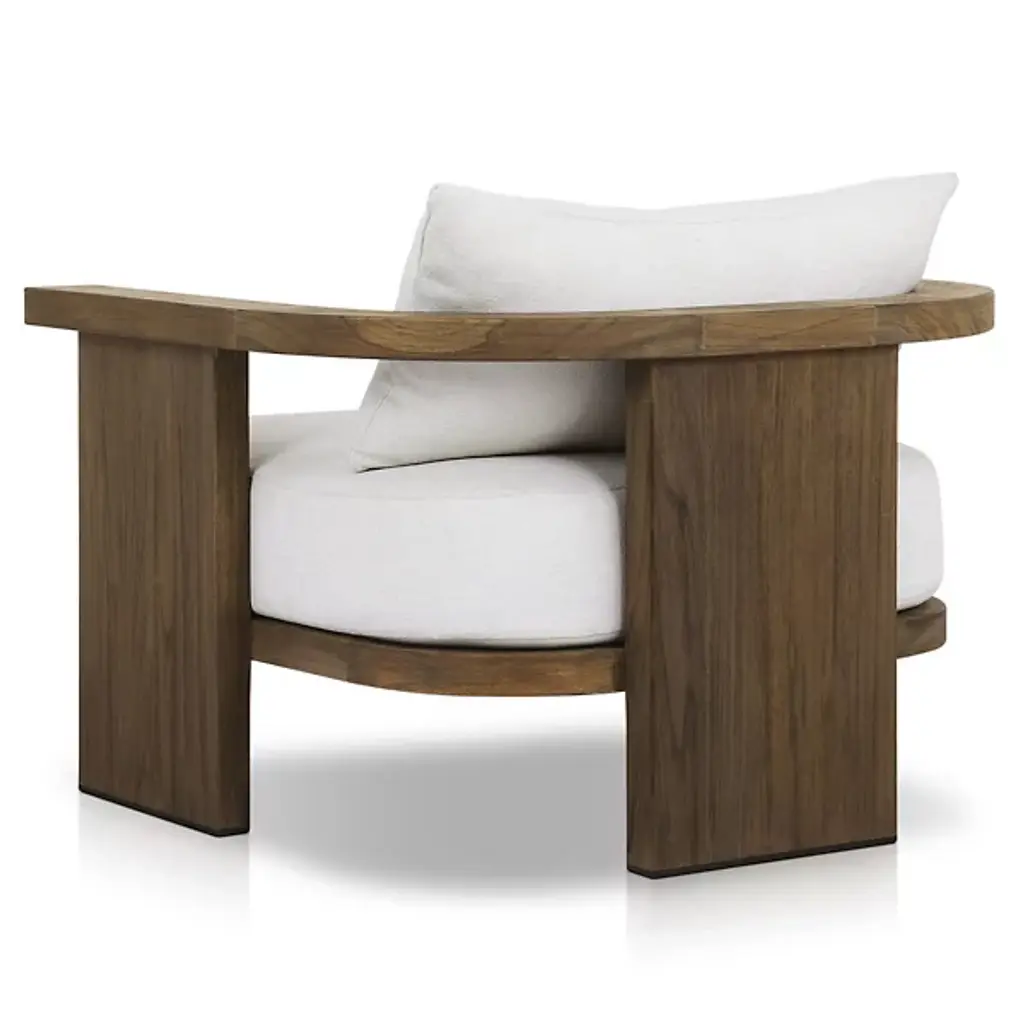 The Tahana Outdoor Lounge Chair from Four Hands is a contemporary piece that presents style and comfort for your outdoor space. It is designed with a contoured seatback and an open framework, creating a relaxing and inviting atmosphere. Tahana is crafted from 100% polypropylene, solid FSC- teak, and it features a plush composition of polyurethane foam and polyester fiber. Your outdoor chair promises durability and gives you a comfortable seating experience.