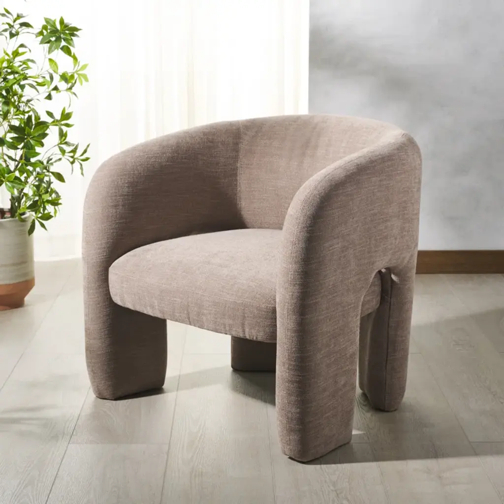 Introducing the Tamlyn Performance Fabric Accent Chair, a prime choice for those who value comfort and style. This splendid accent chair will dazzle your living space with its sleek design and light brown hue. Crafted with true integrity, both pinewood and plywood are used in its composition, ensuring stability and consistency. The choice of wood adds a natural charm and a warm, welcoming atmosphere to your space. The covering, made from elegant linen, enhances the chair's visual appeal and delivers an unbelievably soft-to-touch feel for an excellent comfort experience. The performance fabric is designed to withstand daily use while retaining its fresh look, providing a lovely lounge spot for all your leisure moments. Our Tamlyn Performance Fabric Accent Chair in light brown is not just a chair. It's a stylish statement for your home decor. Upgrade your living room or reading nook with this sophisticated addition, which is as practical as it is stylish. Invite modern elegance into your home with Tamlyn!