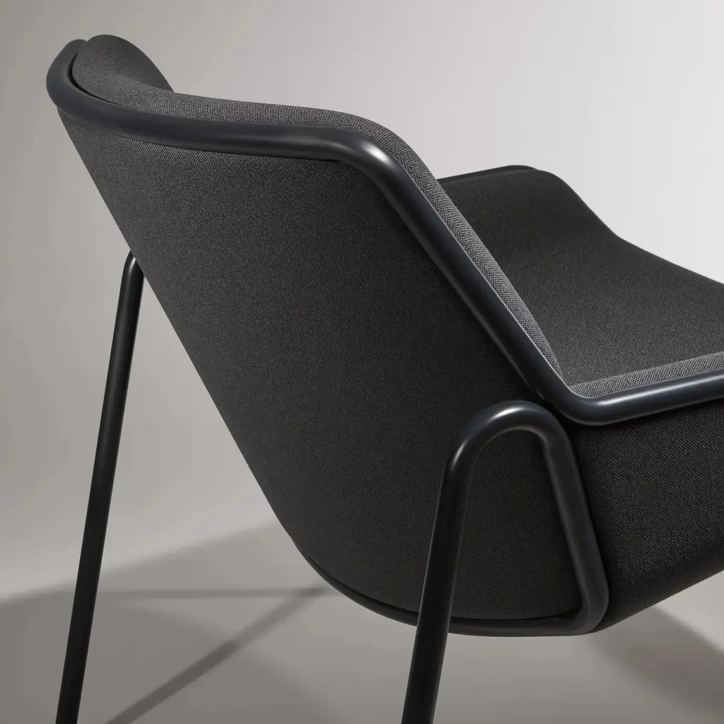 Don’t let its modest curves fool you. Tangent will boldly take your comfort in a new direction. Gently rounded powder-coated steel hugs a roomy, upholstered seat ready to scoop you up and cradle you in comfort. With eager-to-please proportions and an elegant silhouette, it’s poised to put you and all of your guests in a comfortable spot.