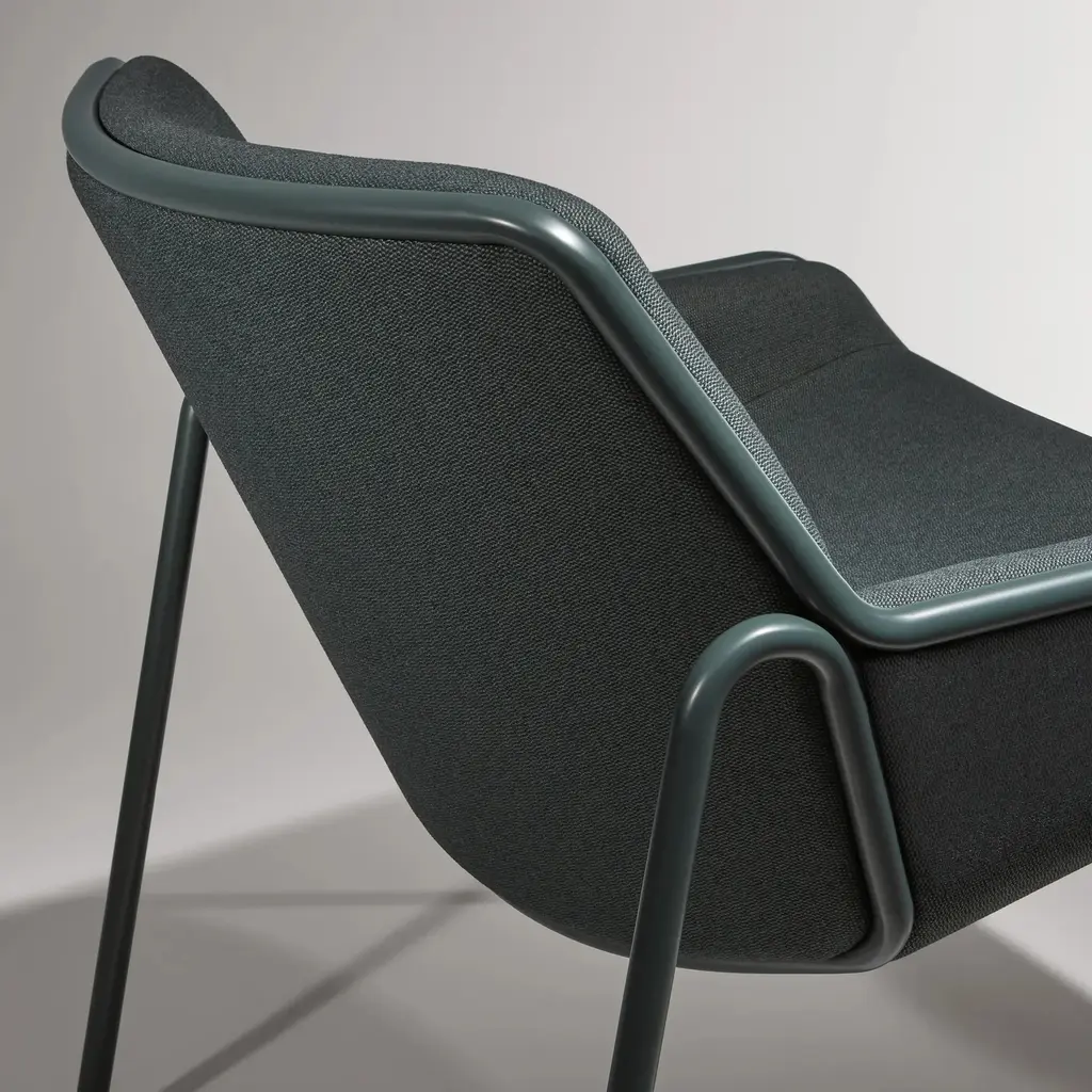 Don’t let its modest curves fool you. Tangent will boldly take your comfort in a new direction. Gently rounded powder-coated steel hugs a roomy, upholstered seat ready to scoop you up and cradle you in comfort. With eager-to-please proportions and an elegant silhouette, it’s poised to put you and all of your guests in a comfortable spot.