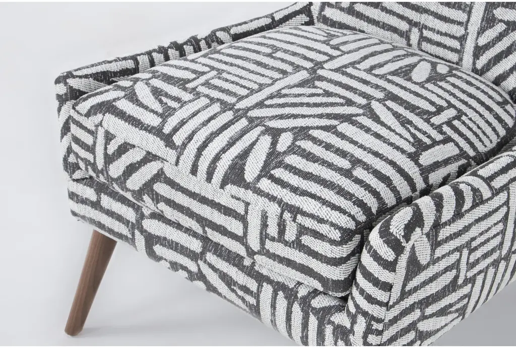Enhance your living room with the Tate V Black Heiro Accent Chair Set Of 2. These modern, armless accent chairs feature a striking charcoal fabric that adds a sophisticated touch to any space. Their tapered legs provide stability and style, making them a perfect addition to your home.