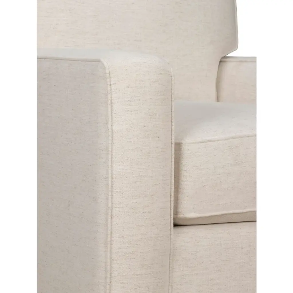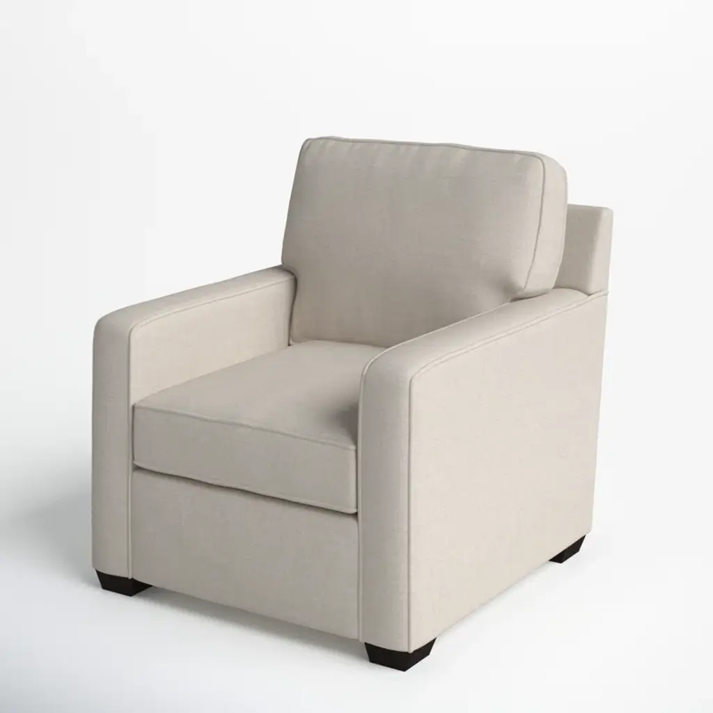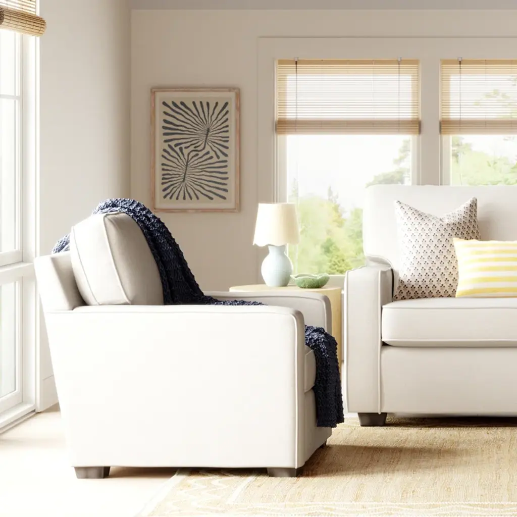 This armchair is practically made for your traditional living room or entryway. It's built with a solid and engineered wood frame that rests on sturdy legs. This chair is wrapped in fabric that's super sturdy and comes in the color of your choice. It has square arms and a cushion back that complete its classic look. Plus, its seat and back cushions are removable, so it's a breeze to vacuum. And the cushions are reversible to help ensure even wear. No assembly is required, so all you have to do is relax.