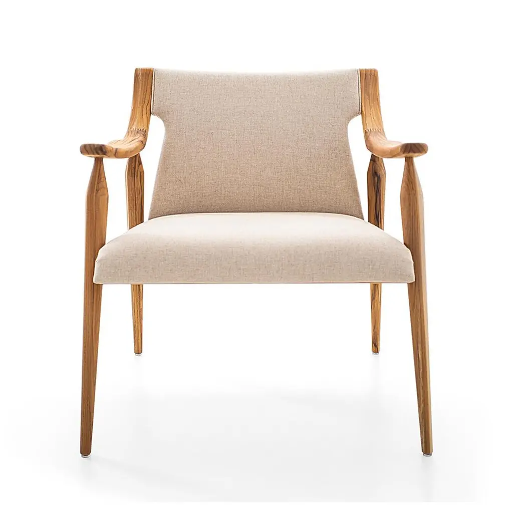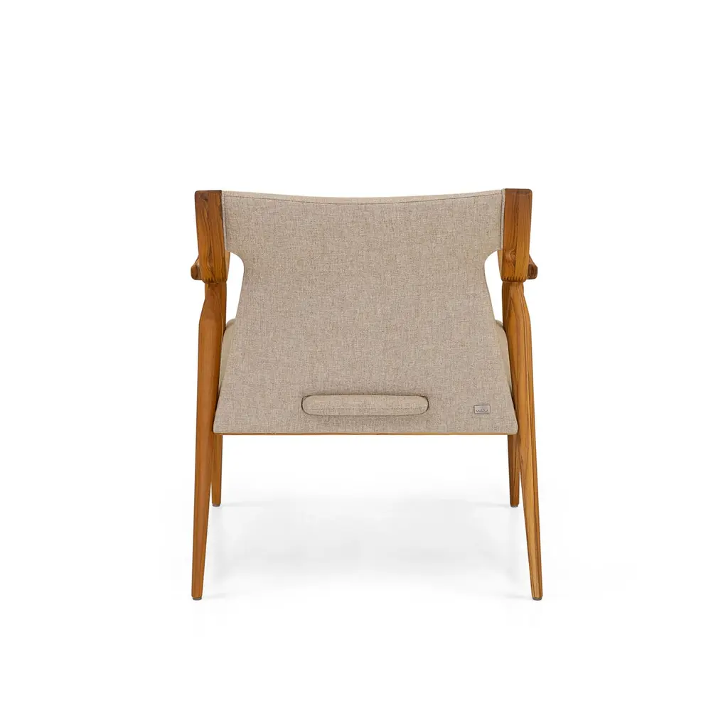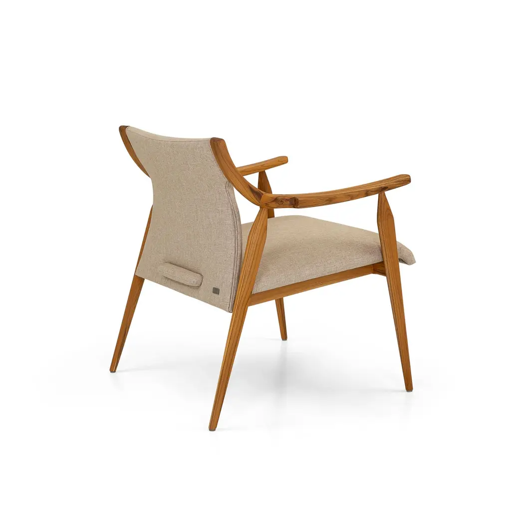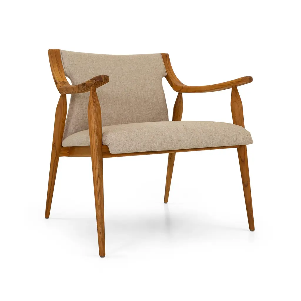 Teak Wood Armchair With Curved Arms And Oatmeal Fabric - Mince Collection