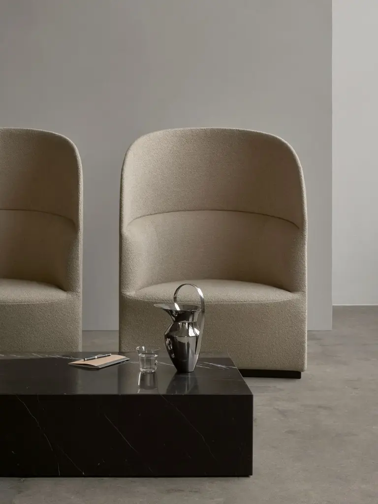 The high back version of the Tearoom Lounge Chair offers moments of quiet contemplation in busy spaces. Expressive and elegant, the secluded, foam-filled furniture piece rests on a wooden base for a natural contrast to the upholstered seat. The addition of a USB port and power socket at the base makes it a practical spot for work as well as play. USB power outlets cannot be added after purchasing a lounge chair without a power outlet.