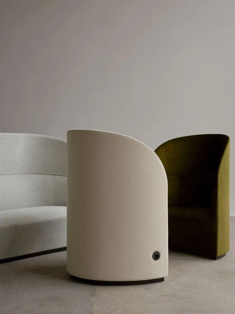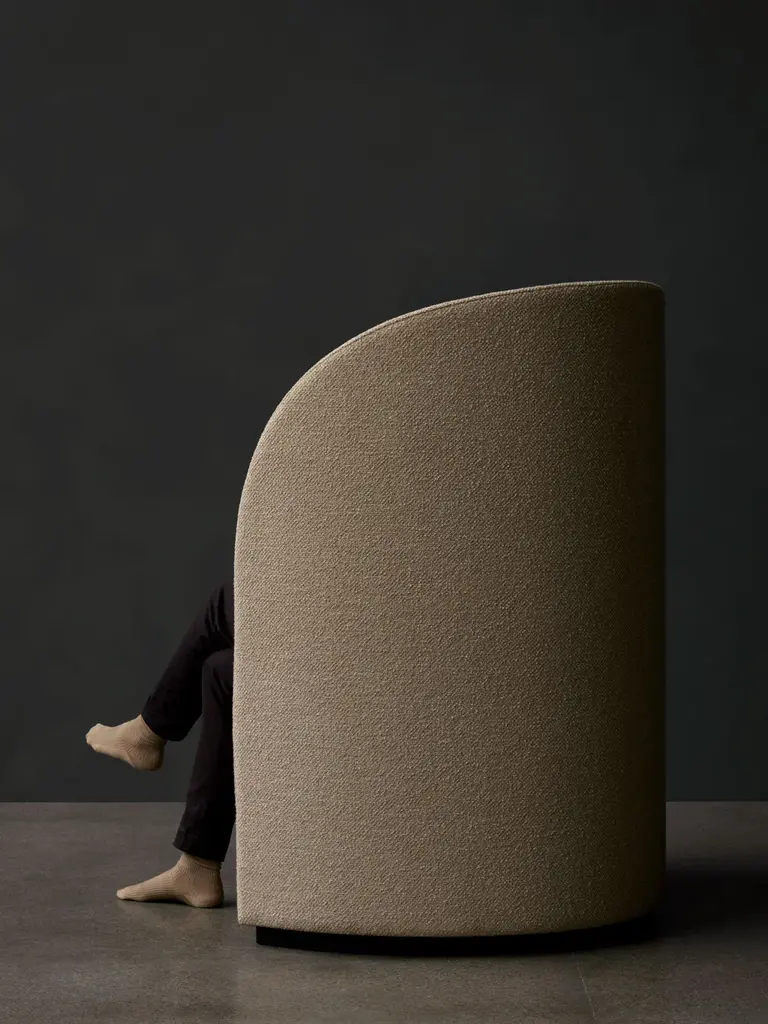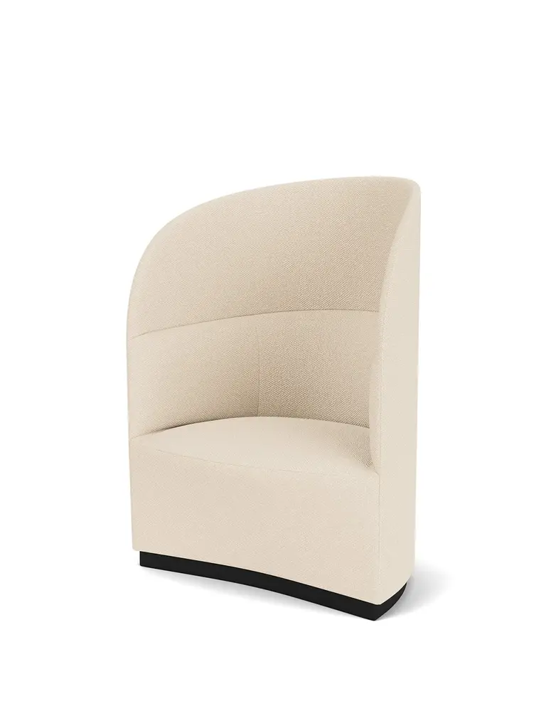 The high back version of the Tearoom Lounge Chair offers moments of quiet contemplation in busy spaces. Expressive and elegant, the secluded, foam-filled furniture piece rests on a wooden base for a natural contrast to the upholstered seat. The addition of a USB port and power socket at the base makes it a practical spot for work as well as play. USB power outlets cannot be added after purchasing a lounge chair without a power outlet.